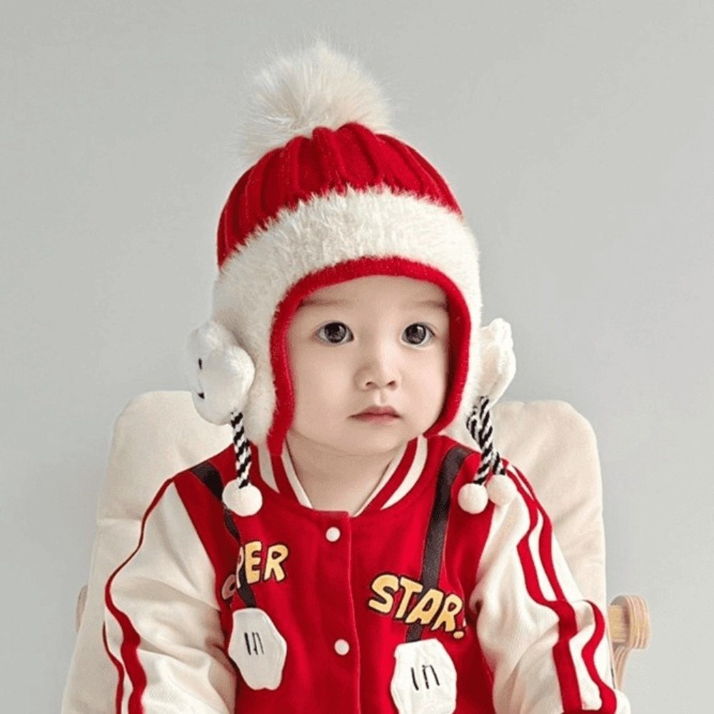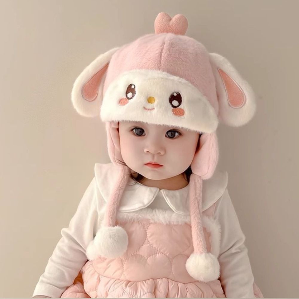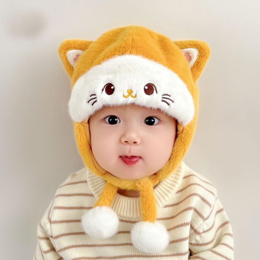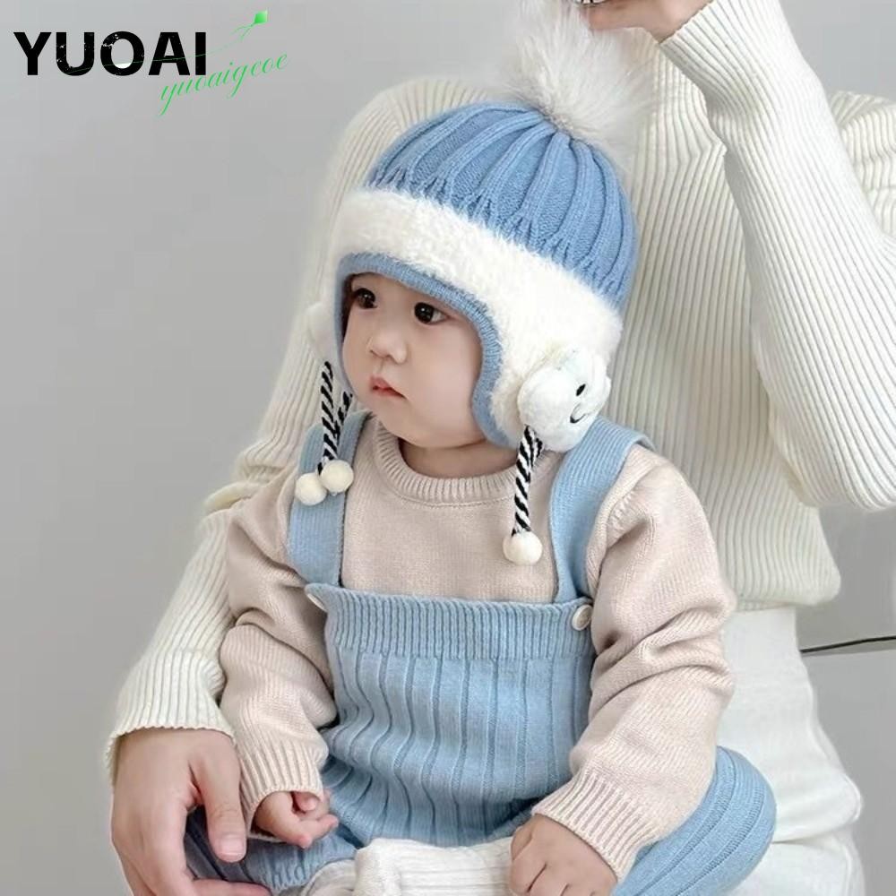 หมวกถักเด็กนุ่มน่ารัก สำหรับฤดูหนาวและใบไม้ร่วง กันลม แฟชั่นการ์ตูน