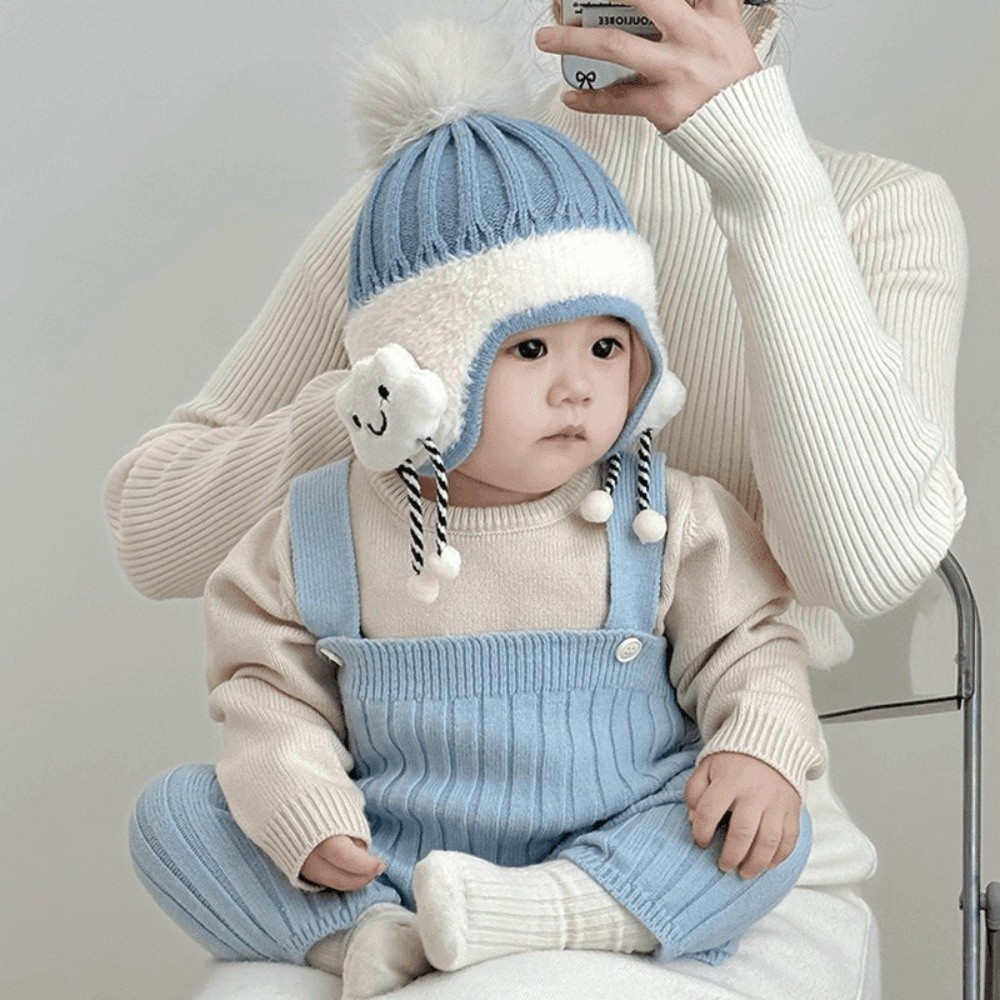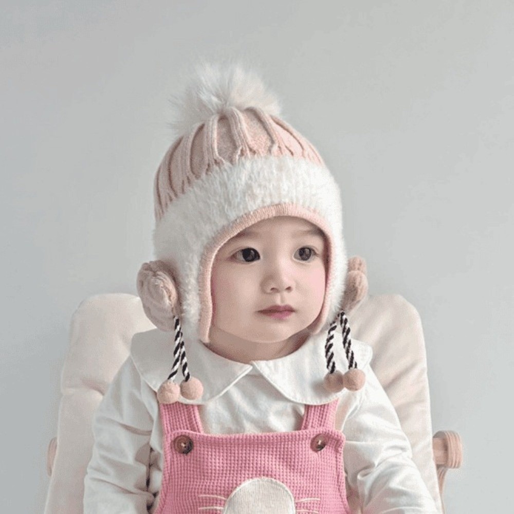 หมวกถักนิตติ้งเด็กปุยนุ่ม อุ่นสบาย กันลมสำหรับหน้าหนาวและตอนนอกบ้าน