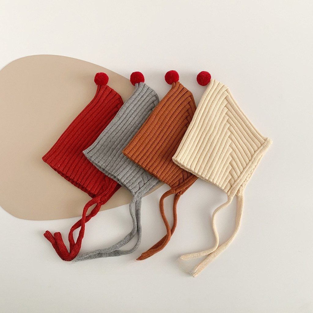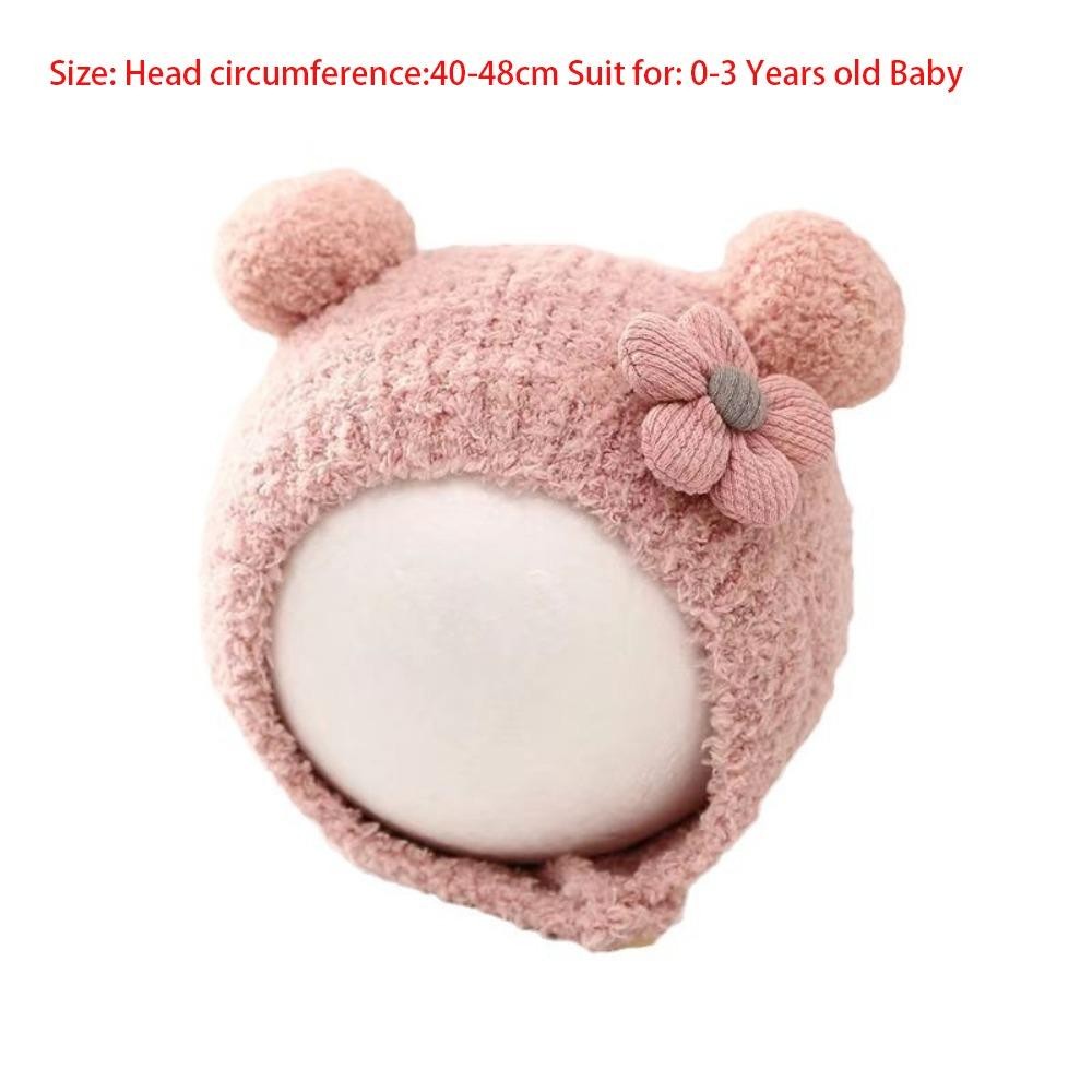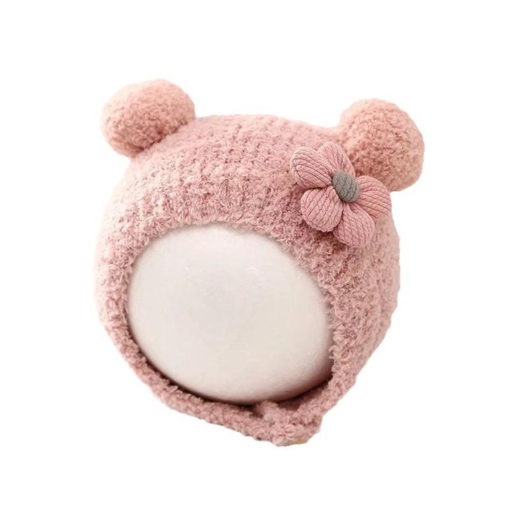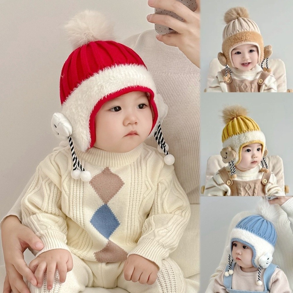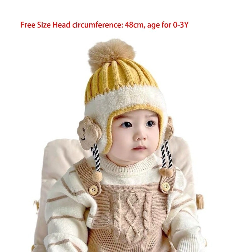 หมวกถักสำหรับเด็กเล็กพร้อมหูปอมปอมน่ารัก กันลม เหมาะสำหรับทารกอายุ 0-3 ขวบ