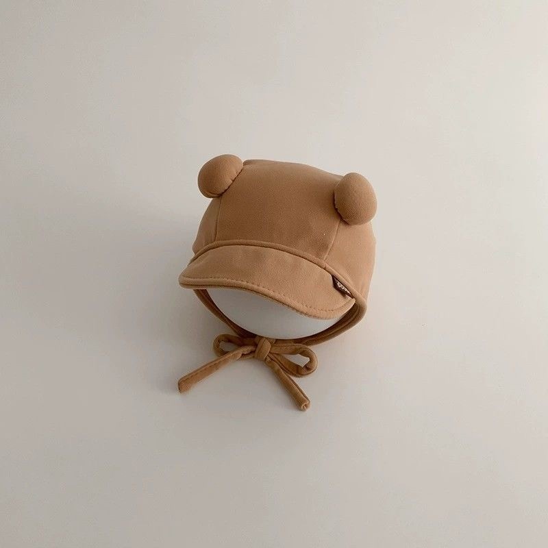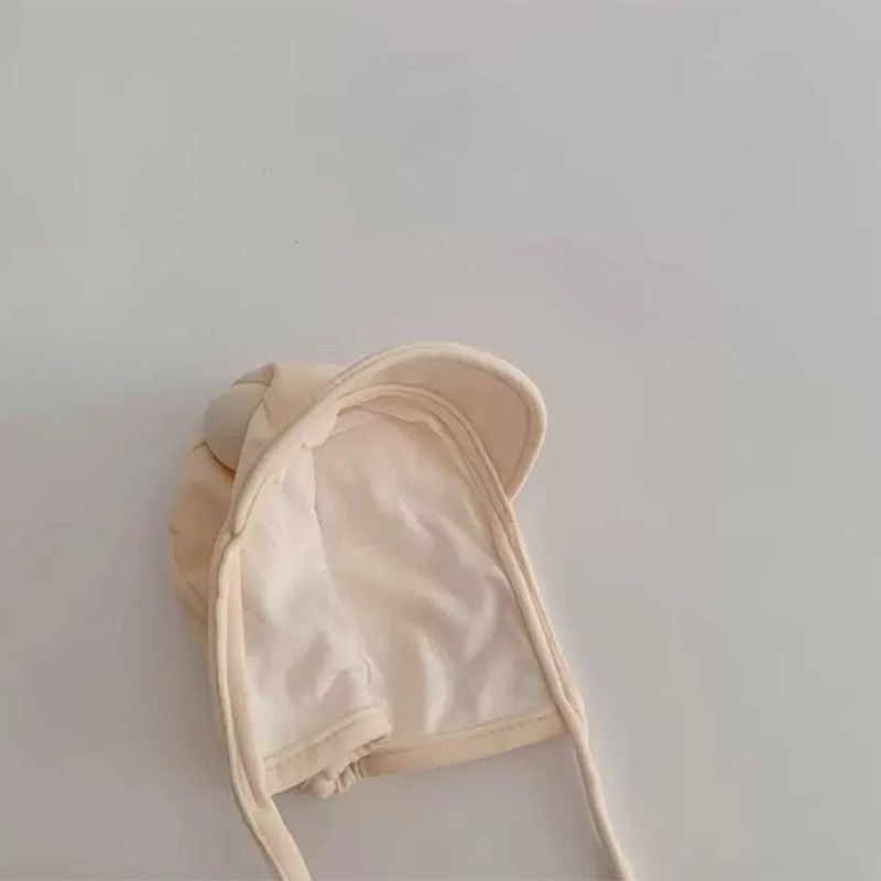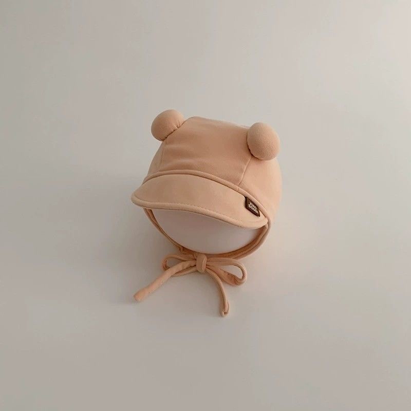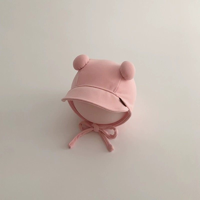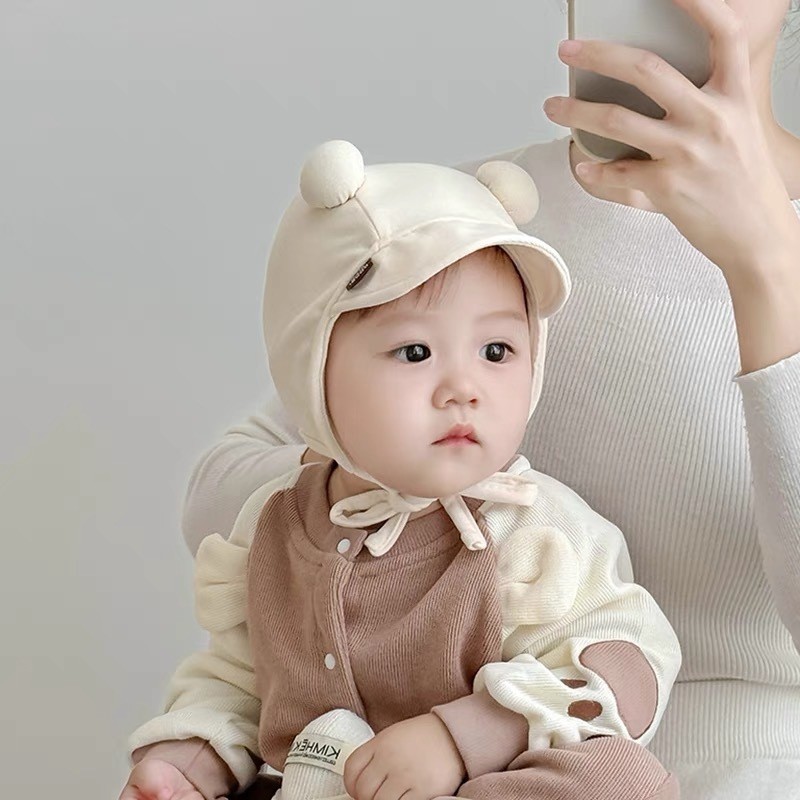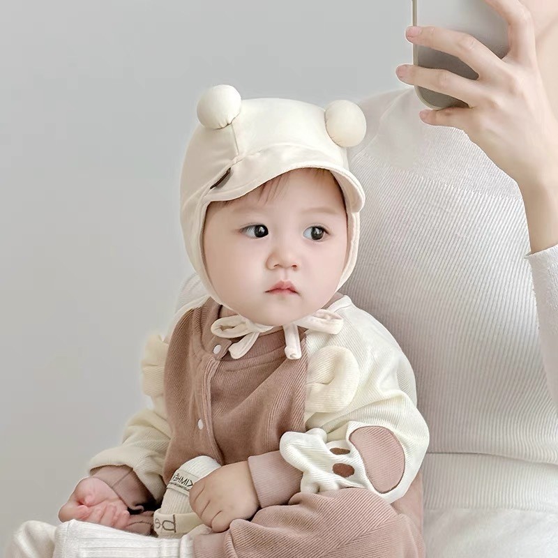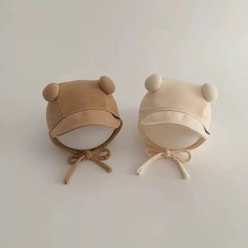 หมวกทารกแรกเกิดน่ารัก สีทึบ สำหรับฤดูใบไม้ผลิและฤดูใบไม้ร่วง มีสายรัดและม่านบังแดด