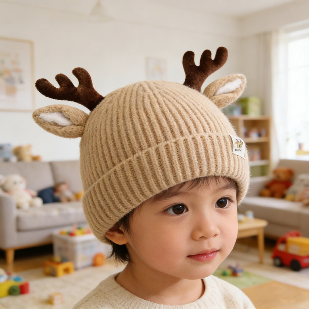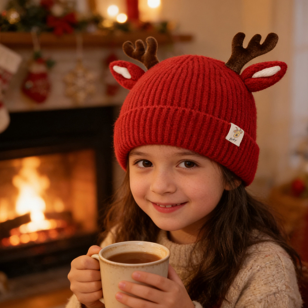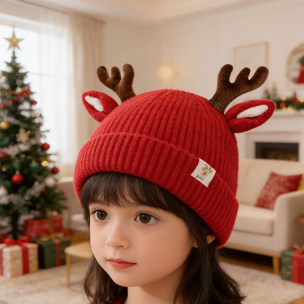 หมวกถักกันหนาวเด็กลายการ์ตูนเขากวางคริสต์มาส