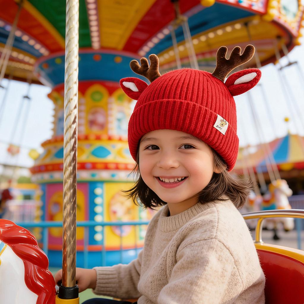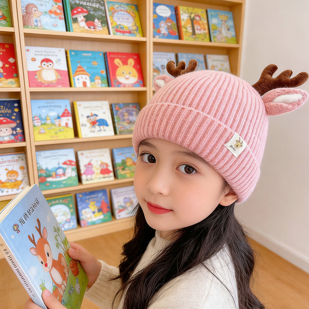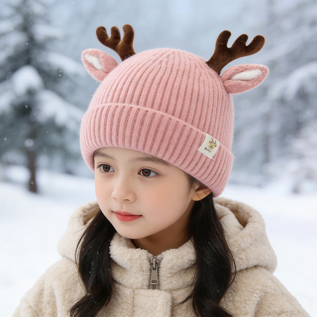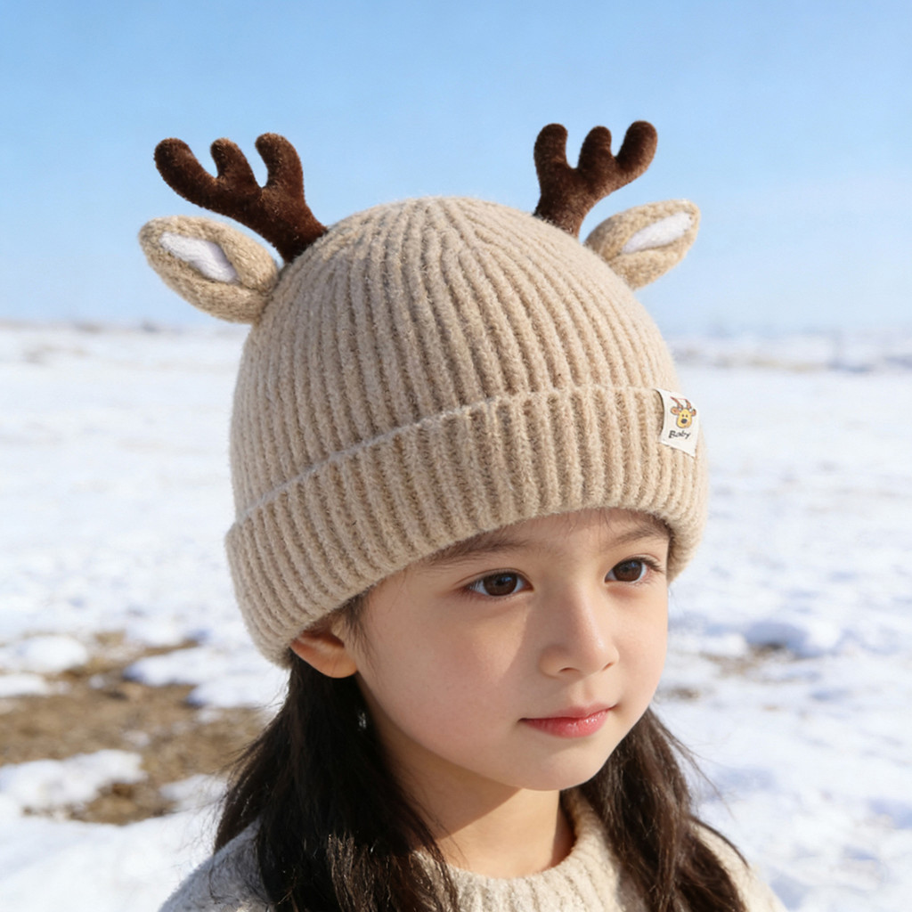 หมวกถักกันหนาวเด็กลายการ์ตูนเขากวางคริสต์มาส