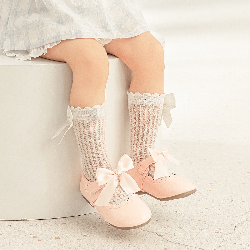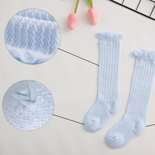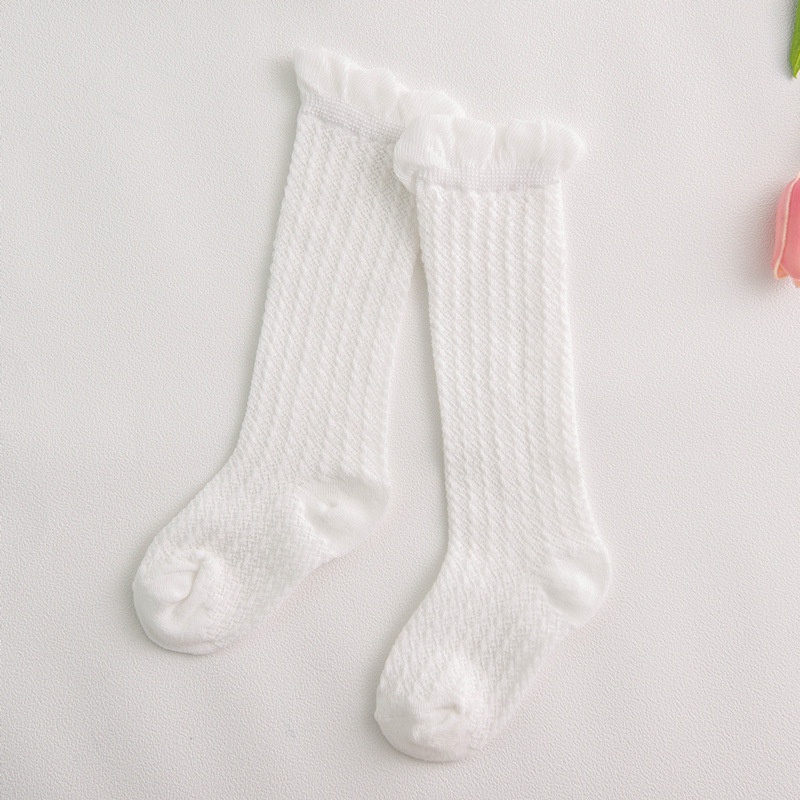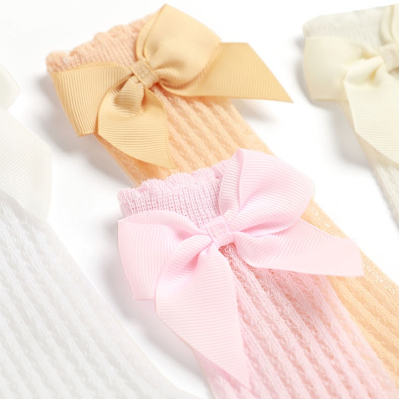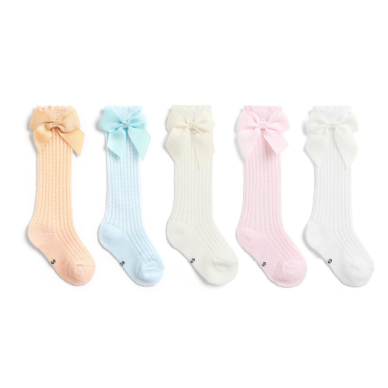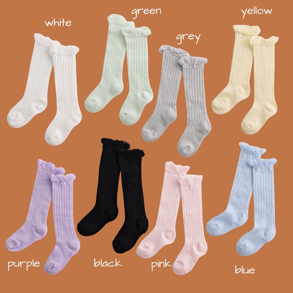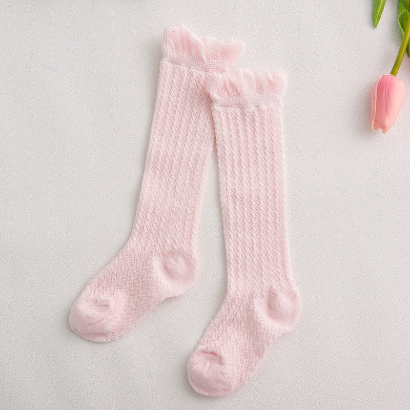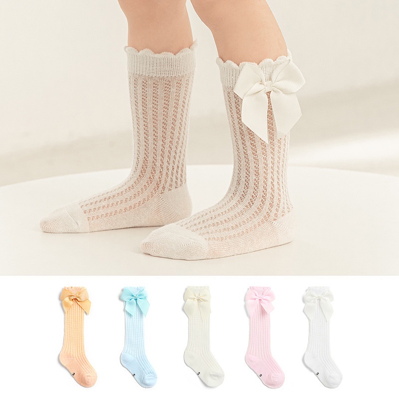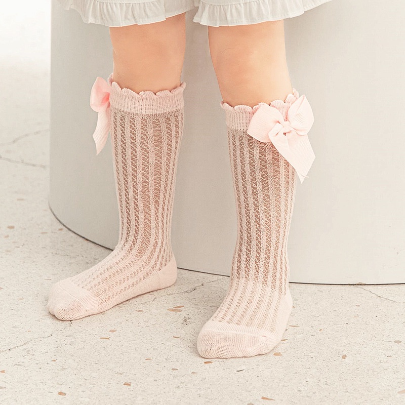 ถุงเท้ายาวสำหรับเด็ก แฟชั่นเกาหลี ระบายอากาศดีเป็นพิเศษ ผ้าตาข่ายนุ่ม ใส่สบาย สีพาสเทล ขอบหยัก แต่งโบน่ารักมาก w20