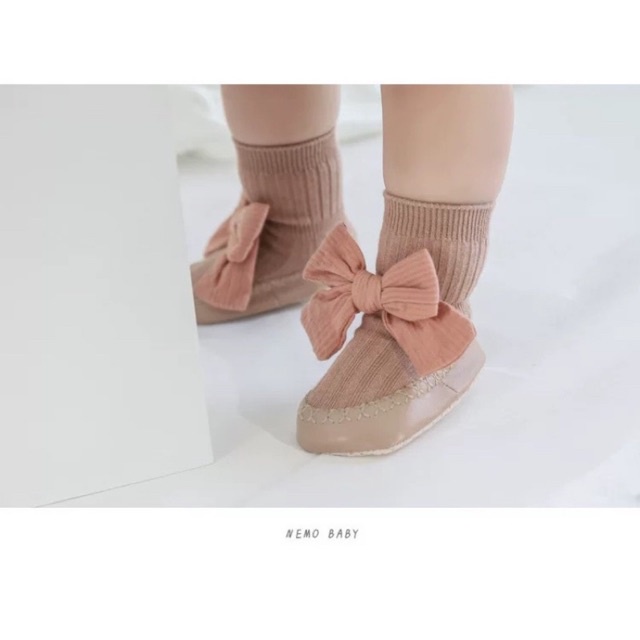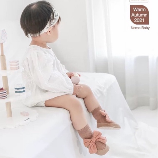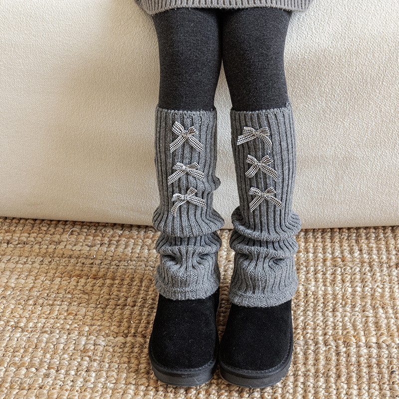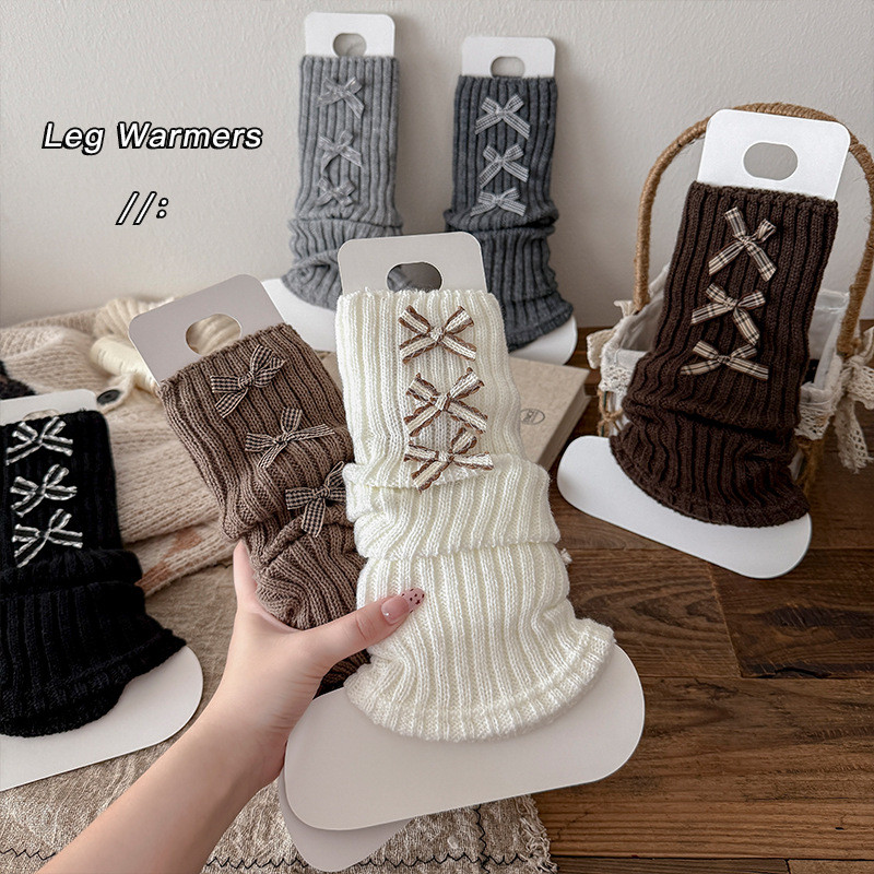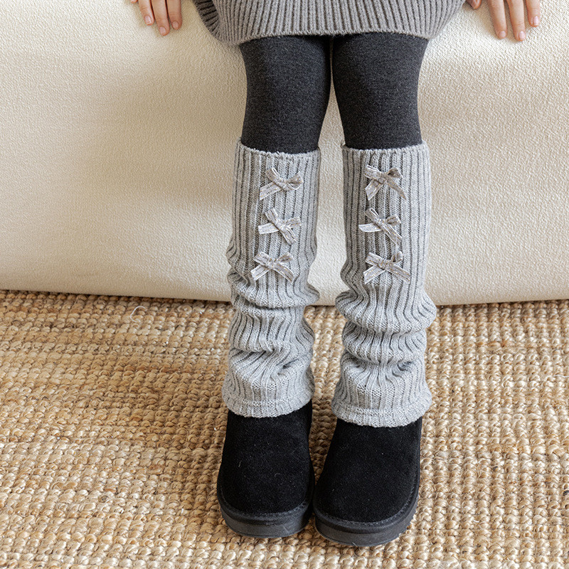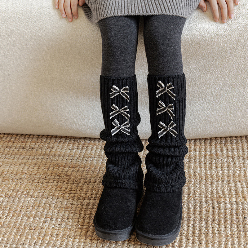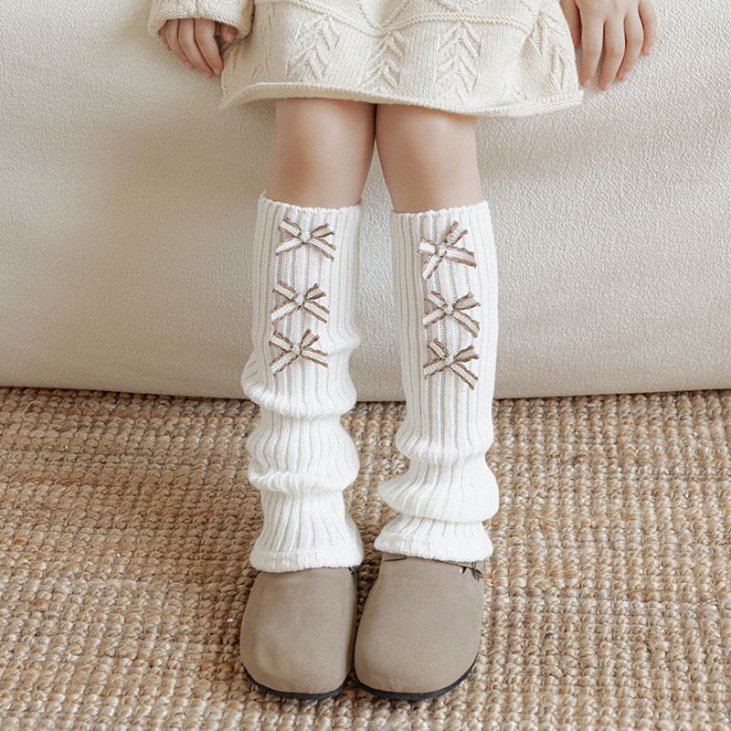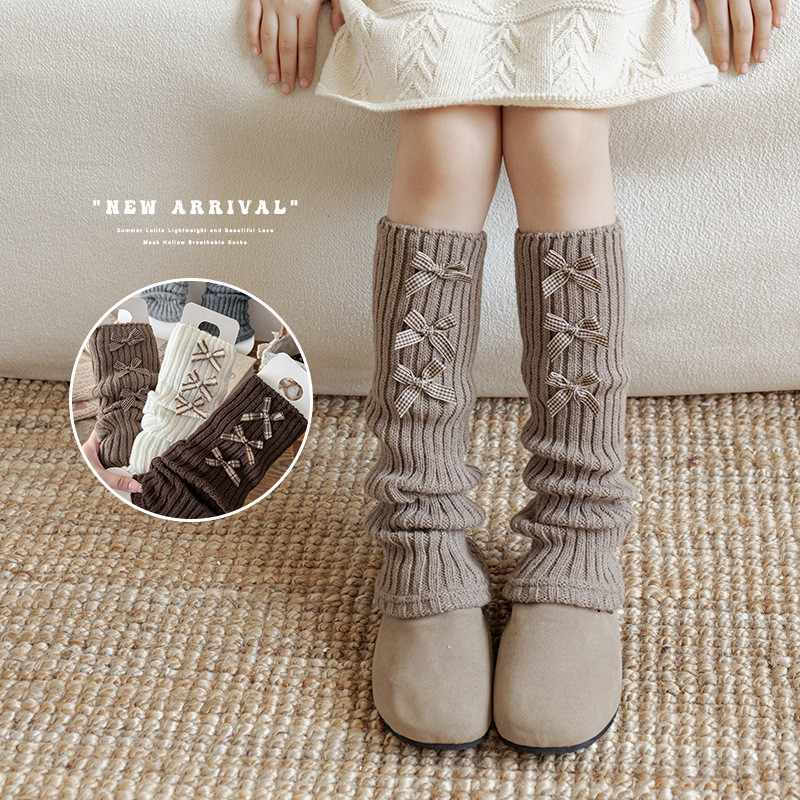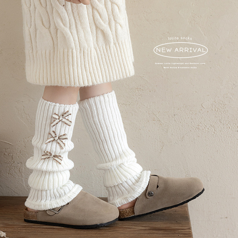 ถุงเท้าสไตล์เกาหลี โบว์แนวตั้ง ลายถักบัลเล่ต์ เหมาะสำหรับฤดูหนาว
