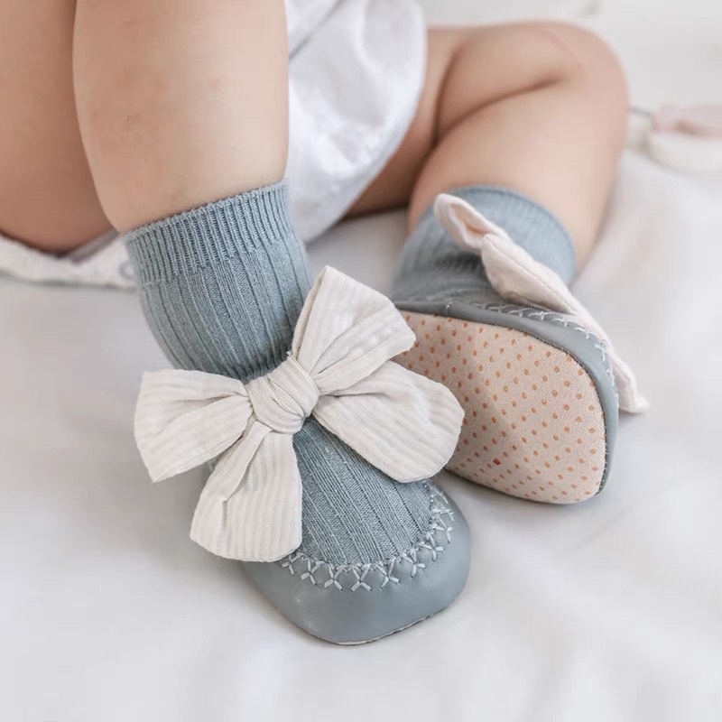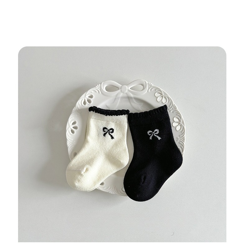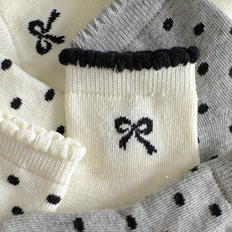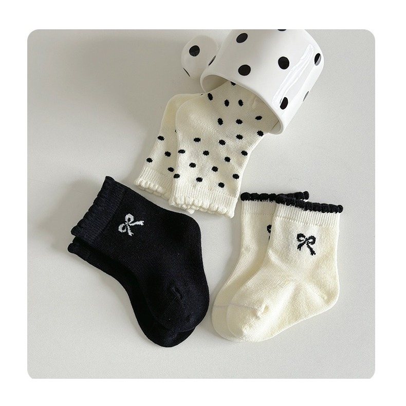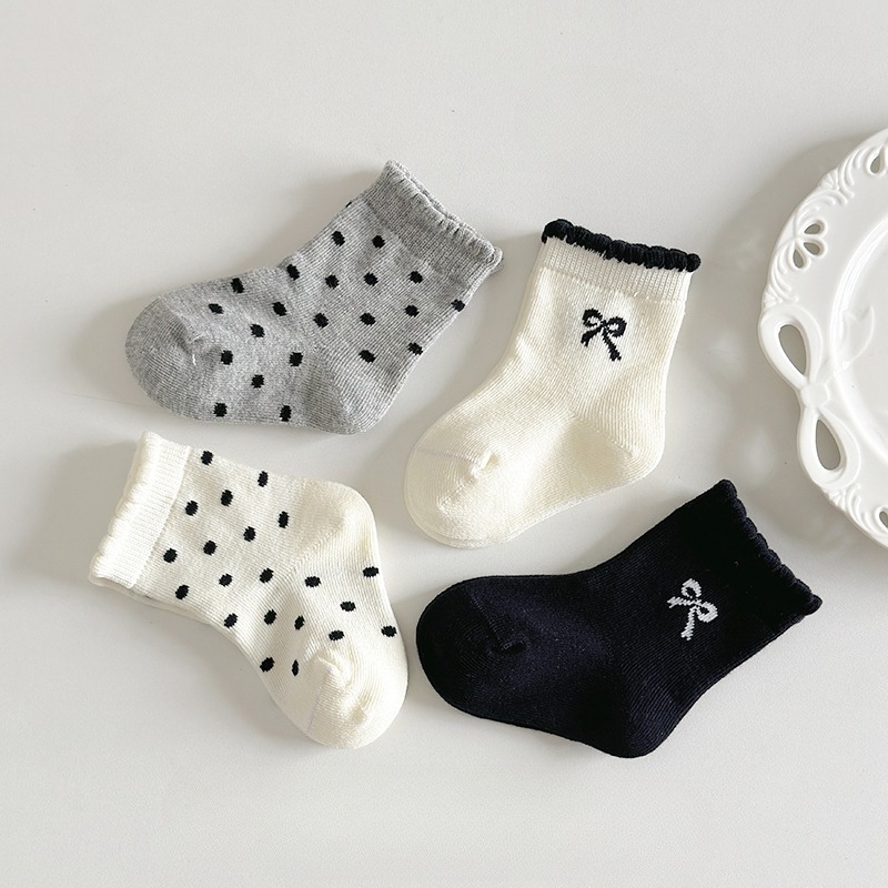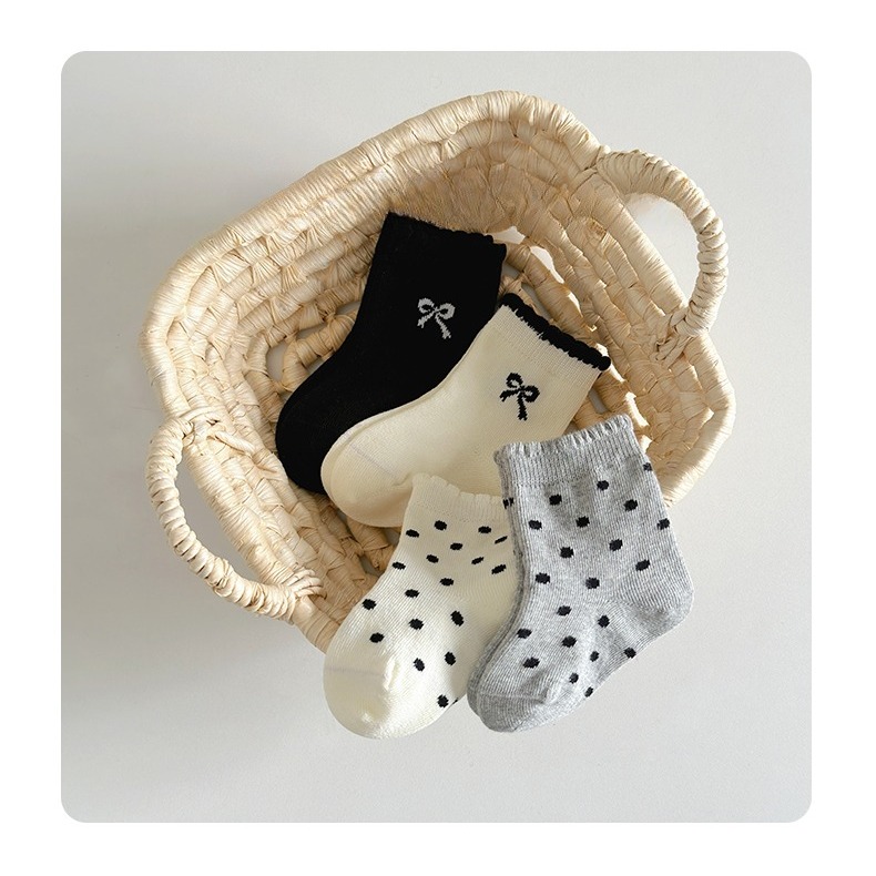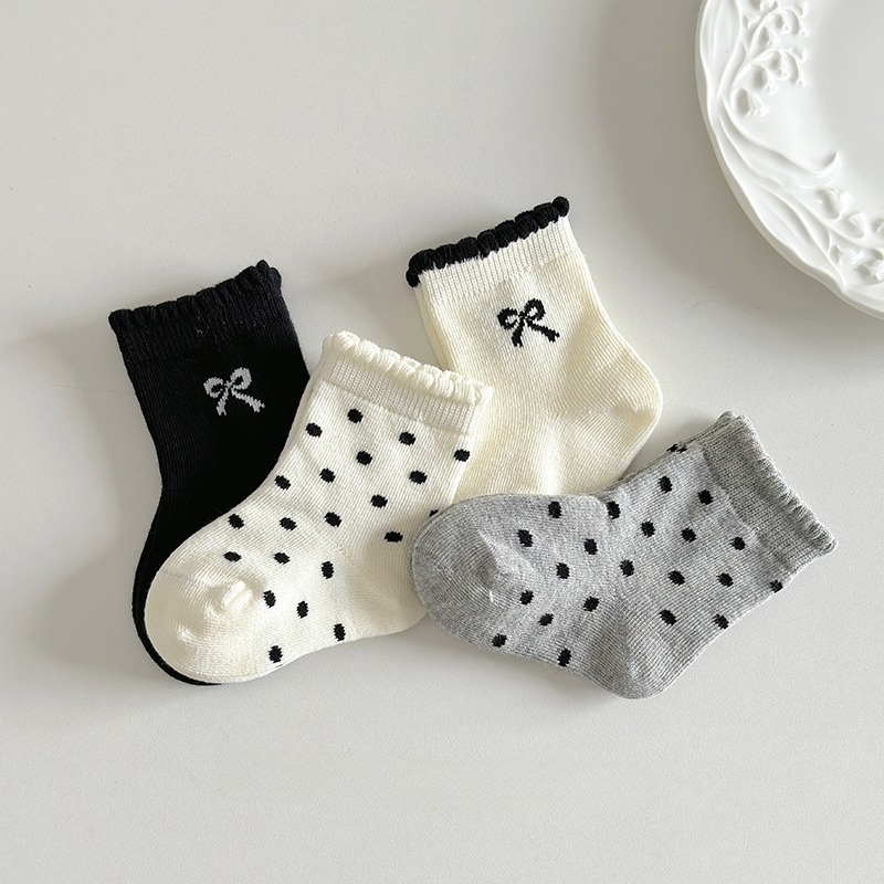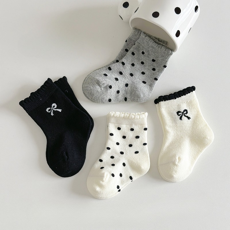 ถุงเท้าลายจุดและโบว์สำหรับเด็กหญิงอายุ 1-5 ปี สี่คู่