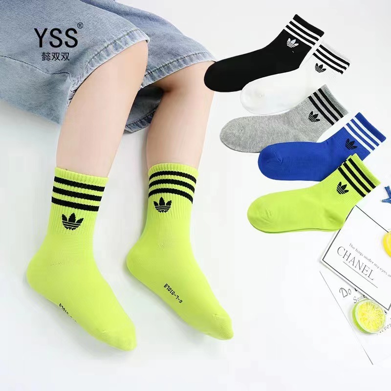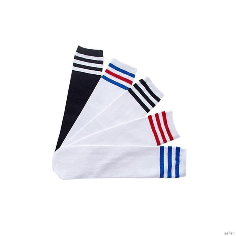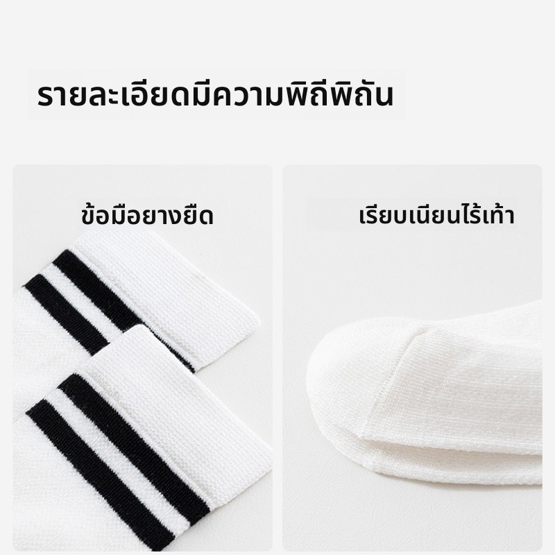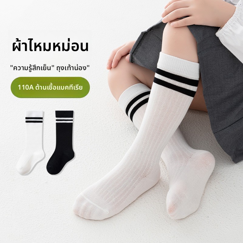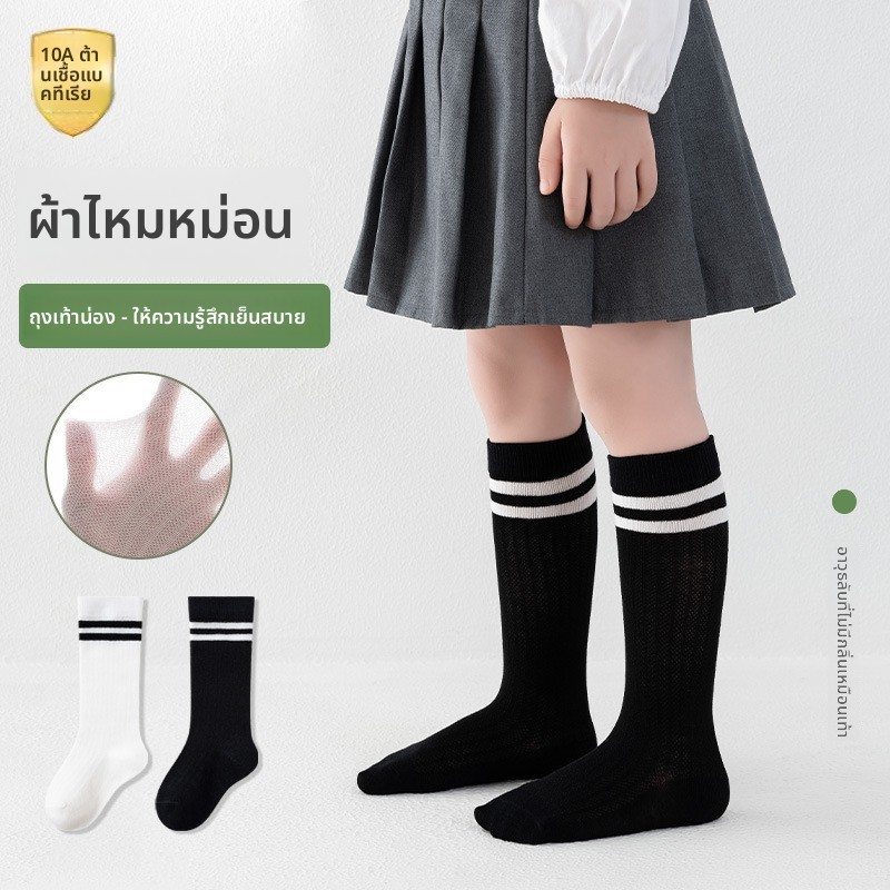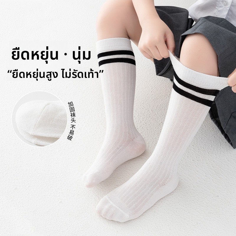 ถุงเท้ายาวเด็ก ลายแถบคู่สไตล์นักเรียน ผ้าฝ้ายผสมบาง ตาข่ายระบายอากาศ-กระชับพอดี