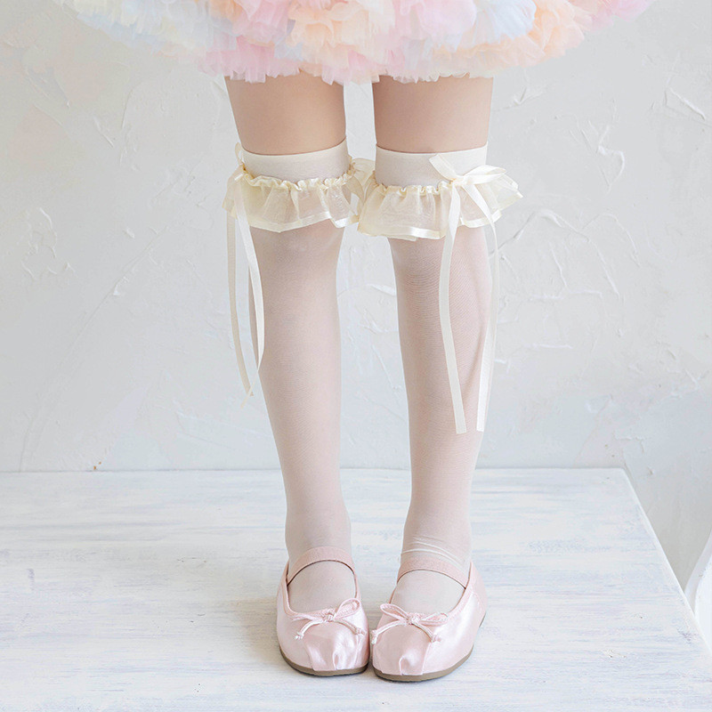 ถุงเท้ายืดหยุ่นสูงสำหรับเด็ก ถุงน่องเด็กผู้หญิง ถุงน่องบางเฉียบ ถุงน่องใส่เต้นรำ