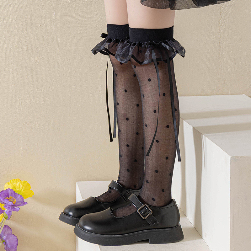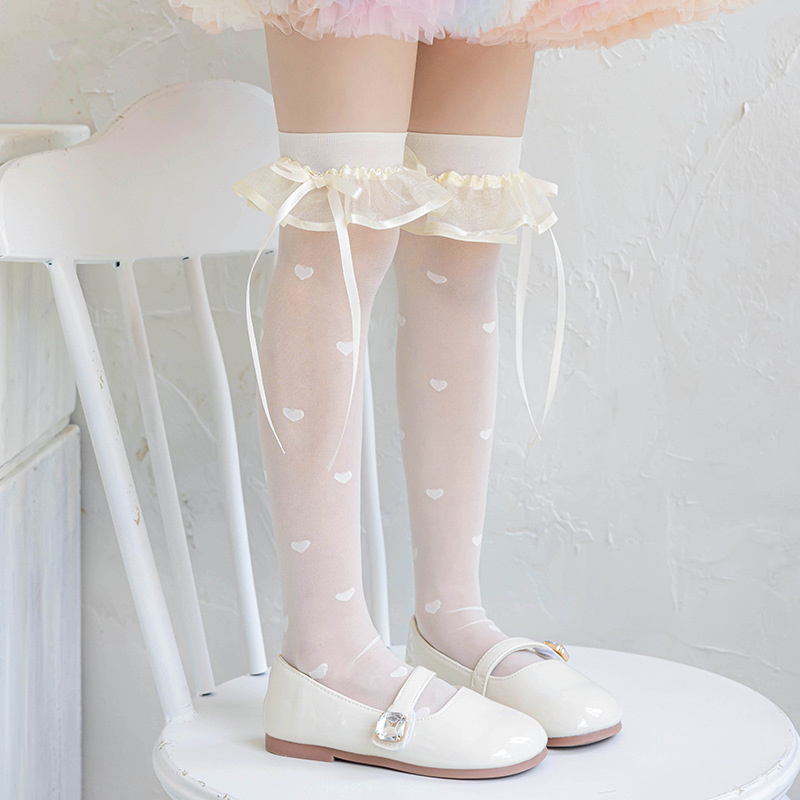 ถุงเท้าลูกไม้เด็กบางโลลิต้าสไตล์เจ้าหญิงลูกไม้หัวใจรักสาวถุงเท้ากลางลูกวัว