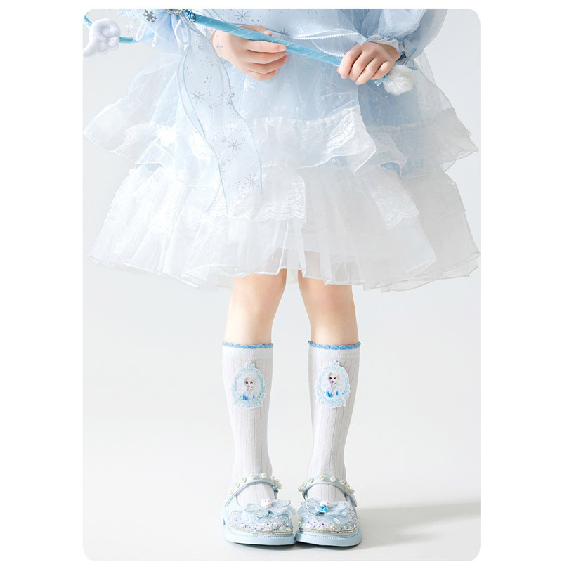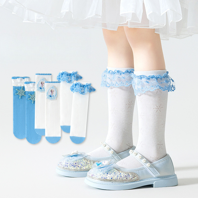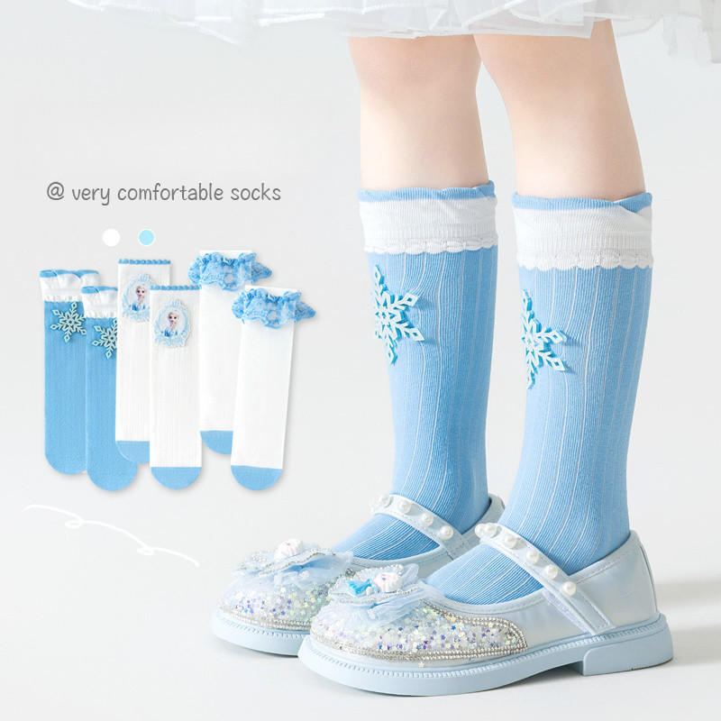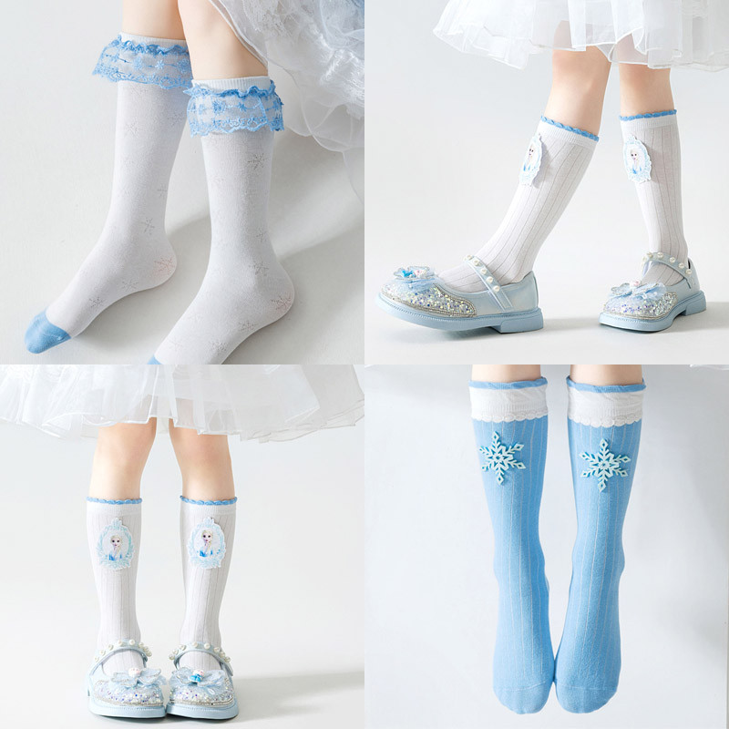 ถุงเท้ายาวบางฤดูร้อนสำหรับเด็กผู้หญิง ถุงเท้าเจ้าหญิงเอลซ่า ถุงเท้ากลางน่อง ลายการ์ตูน ตาข่ายระบายอากาศ
