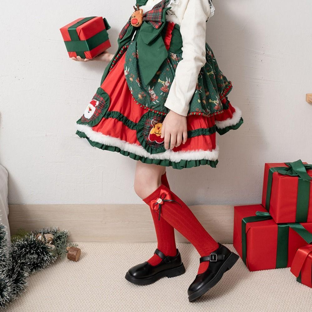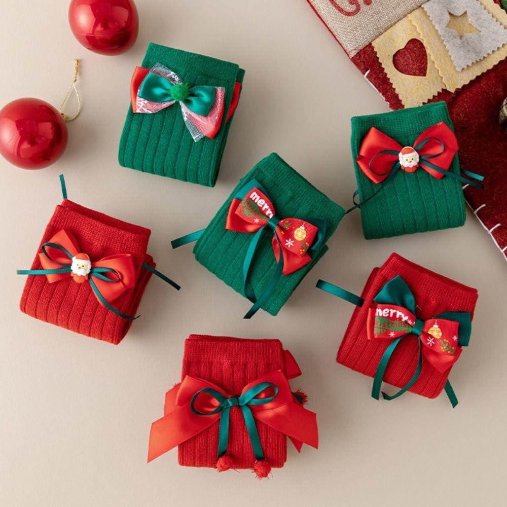 ถุงเท้าลูกวัว ISTANU ทำจากผ้าฝ้าย มีโบว์สีแดงและเขียวกันหนาว พร้อมเป็นของขวัญให้เจ้าหญิง