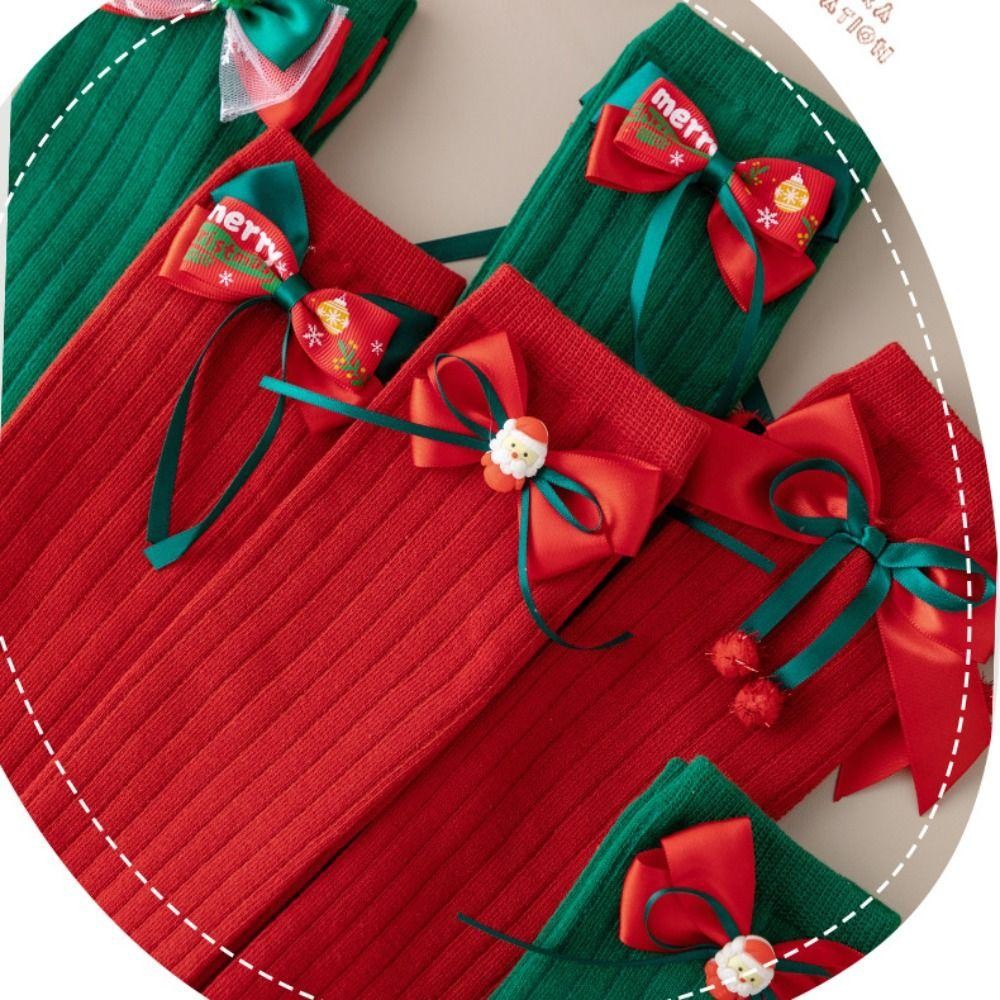 ถุงเท้าสีแดงและเขียวสำหรับวันหยุด ทำจากผ้าฝ้ายคุณภาพดี สำหรับเจ้าหญิงเล็กๆ