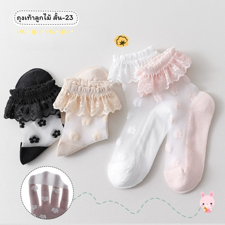 ถุงเท้าลูกไม้เด็ก แบบสั้น 23 งานดี น่าใส่ สำหรับน้อง 2-8 ขวบ [ New พร้อมส่งในไทย ] ✨?