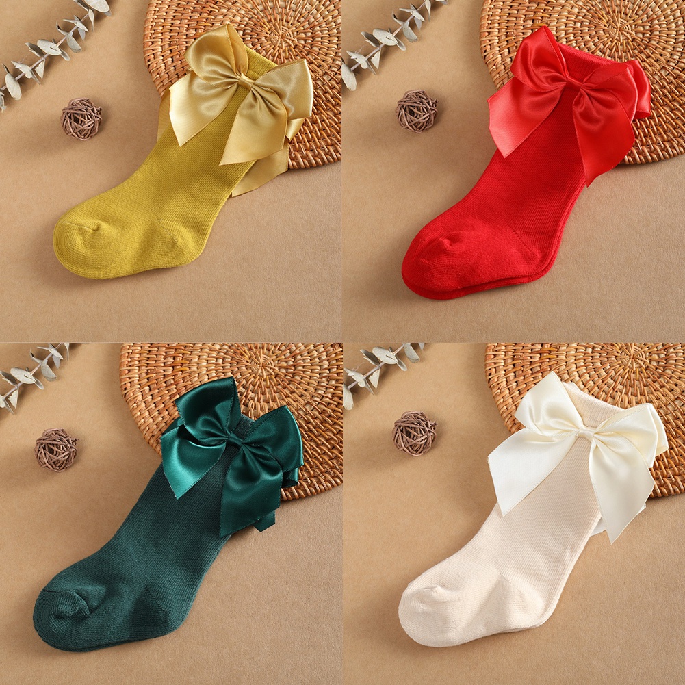 ถุงเท้าเจ้าหญิง ผ้าฝ้ายแท้ ประดับโบว์น่ารัก ใส่สบาย เรียบง่าย สําหรับเด็กผู้หญิง