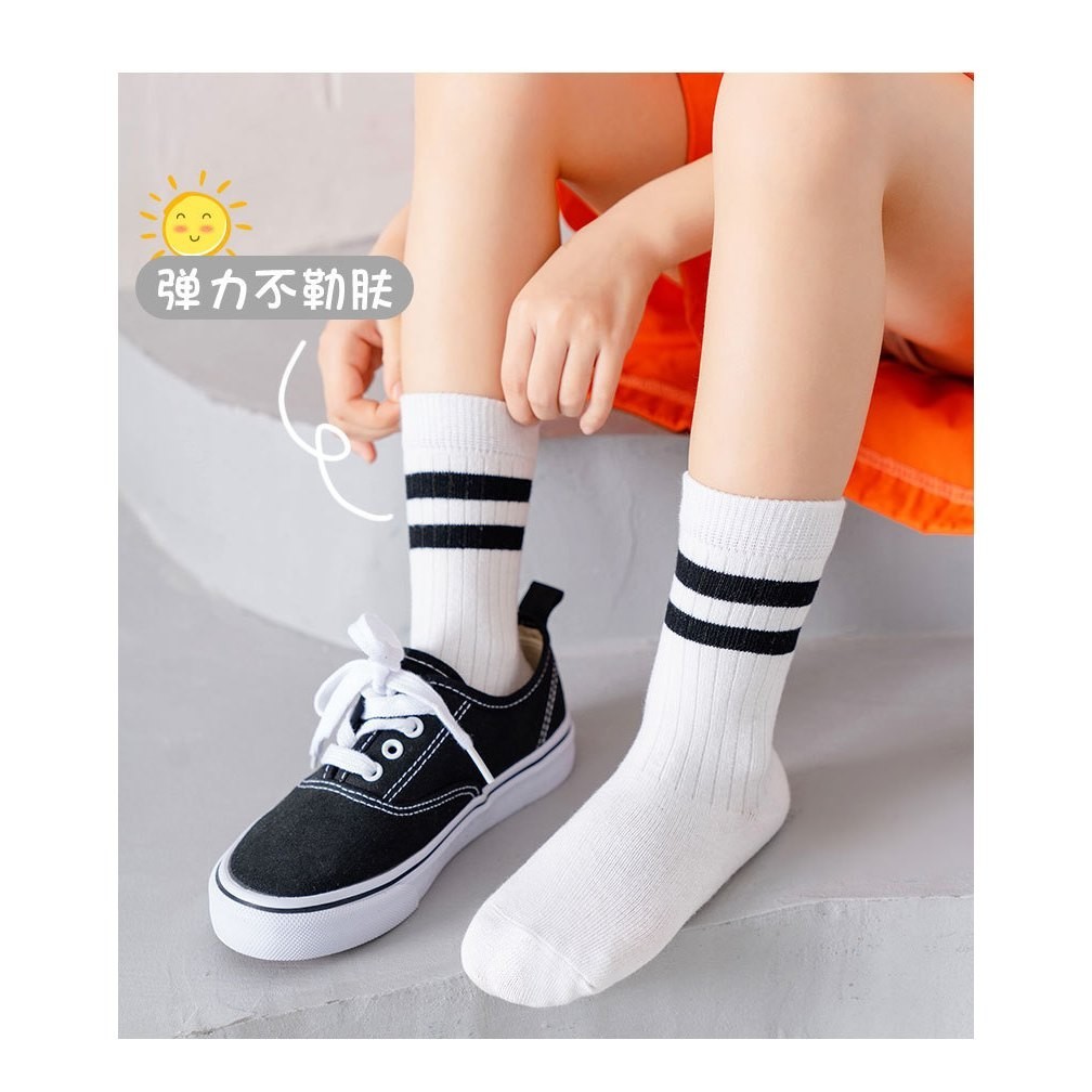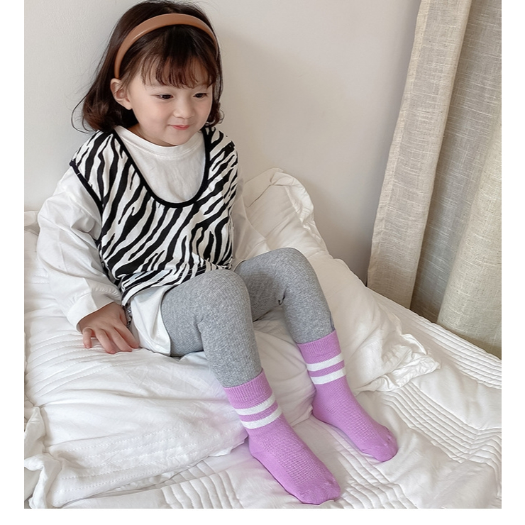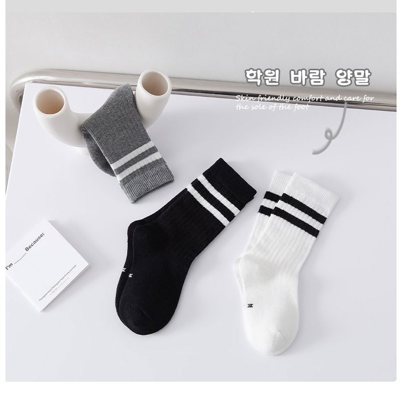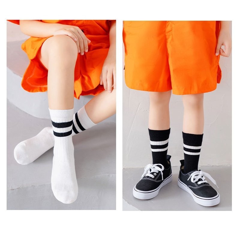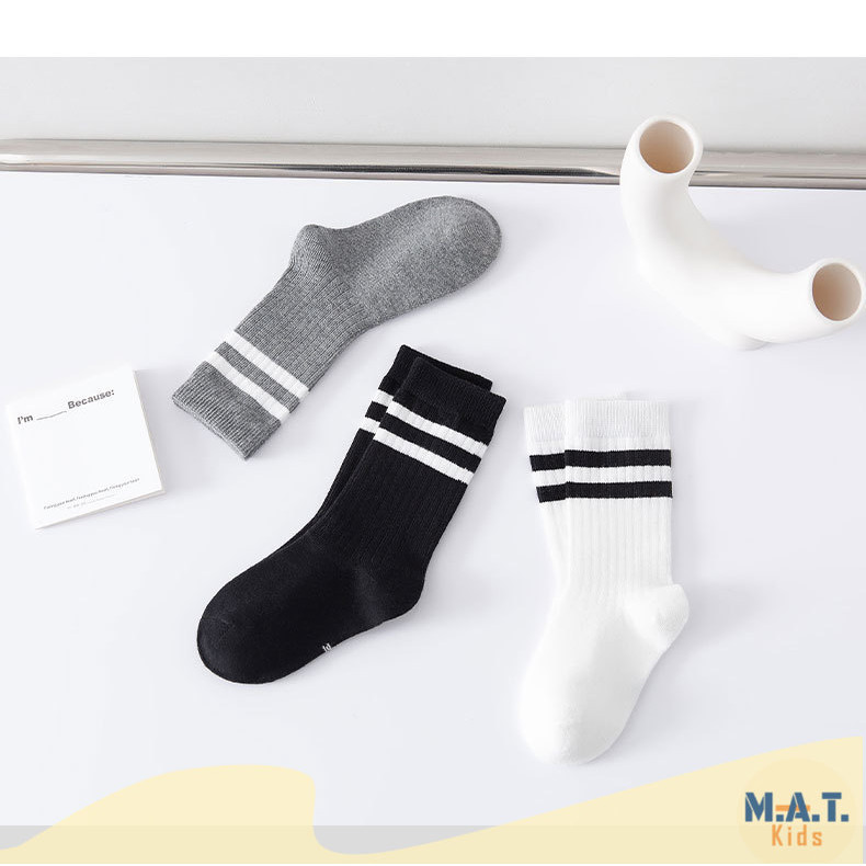 ถุงเท้าเด็ก ข้อกลาง รุ่นขอบแถบคู่ พร้อมส่งจากไทย