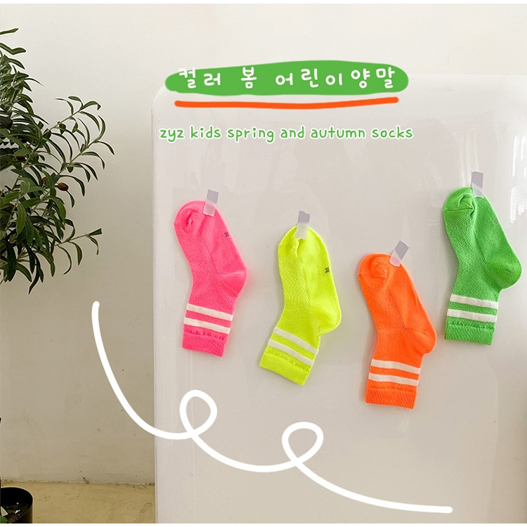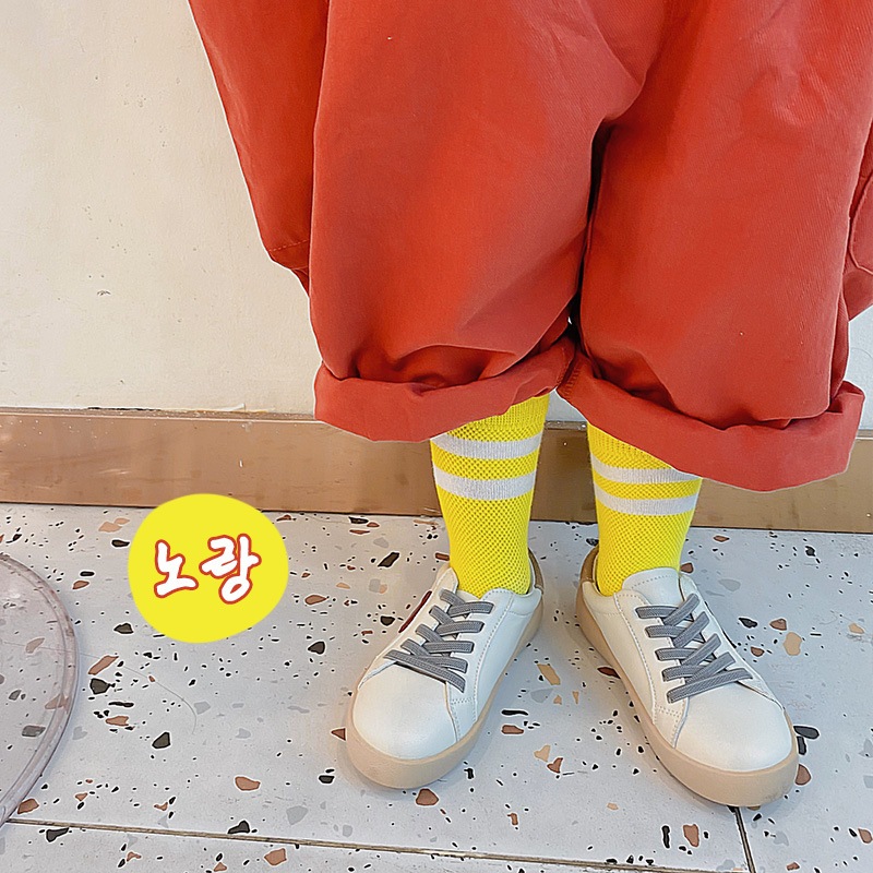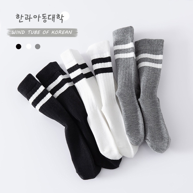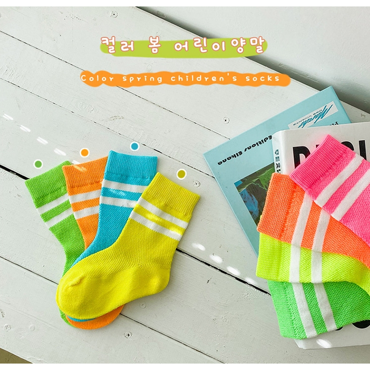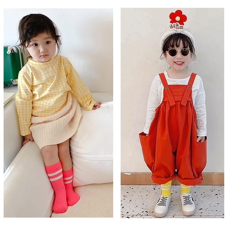 ถุงเท้าเด็ก ข้อกลาง รุ่นขอบแถบคู่ พร้อมส่งจากไทย