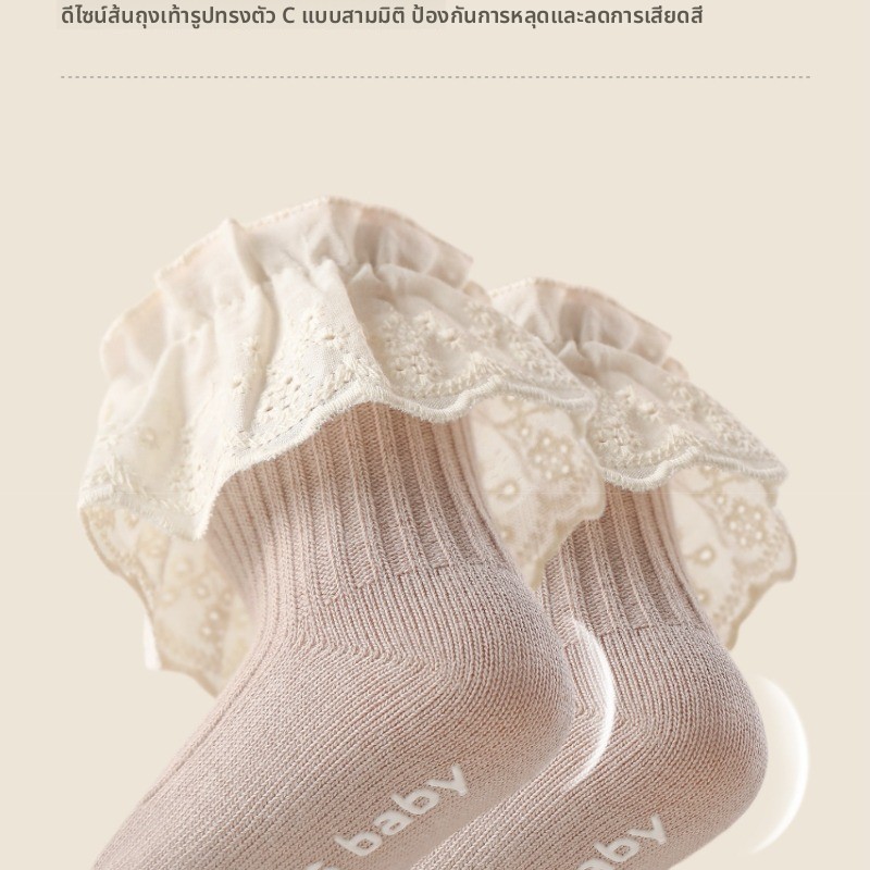 ถุงเท้าเจ้าหญิง ผ้าฝ้าย แบบบาง แต่งขอบลูกไม้น่ารัก แฟชั่นฤดูใบไม้ผลิ และฤดูใบไม้ร่วง สําหรับเด็กผู้หญิง