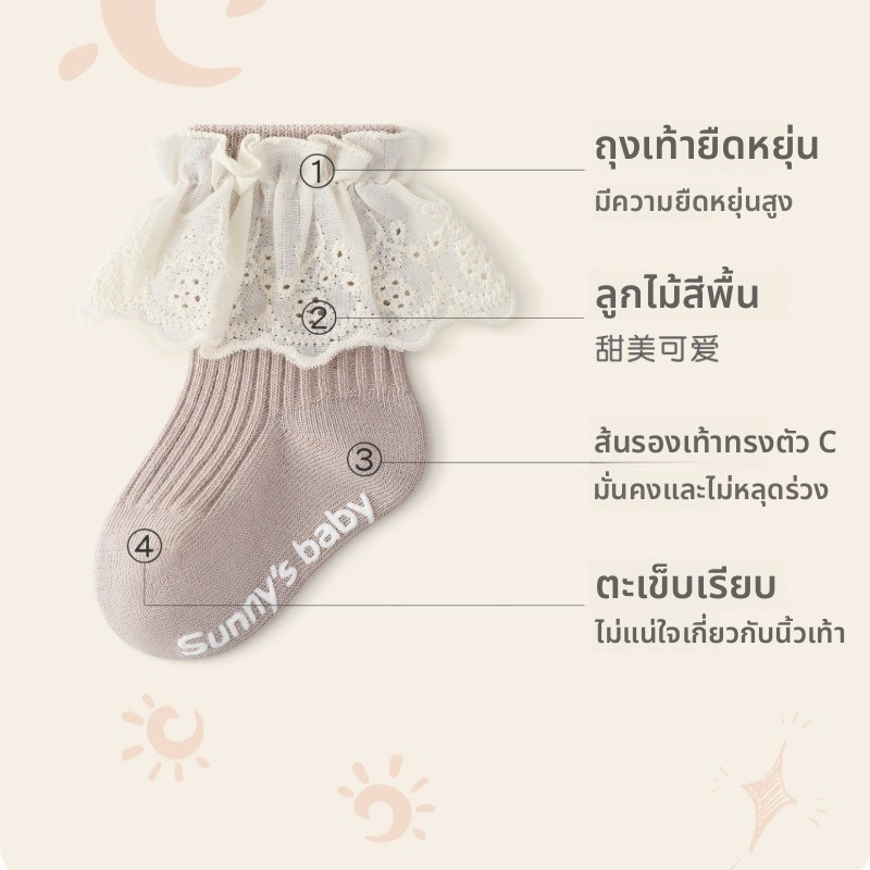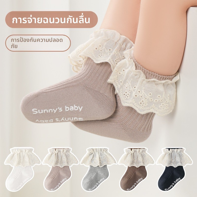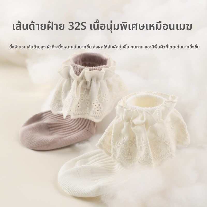 ถุงเท้าเด็ก พร้อมส่ง ผ้าระบายดีมาก นุ่มสบาย แรกเกิด-3ขวบ WZ04