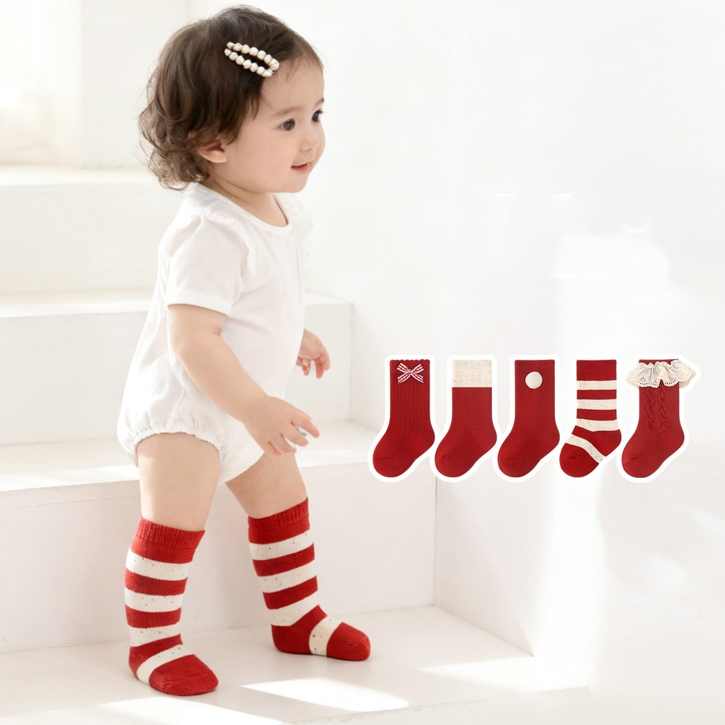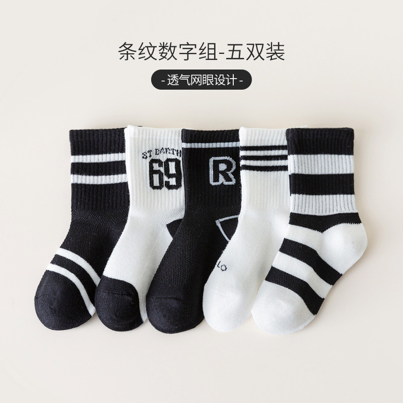 ถุงเท้าเด็ก เซ็ต 5 คู่ น่ารัก ผ้านุ่ม ระบายอากาศได้ดี ถุงเท้าเซ็ต เหมาะสมเด็กชาย/หญิง