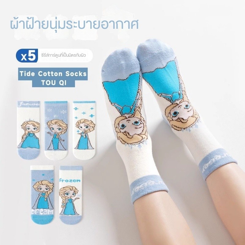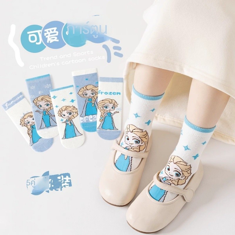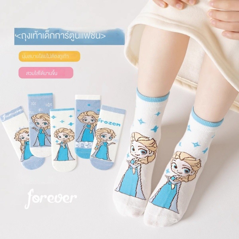 ถุงเท้าเจ้าหญิงเอลซ่าแบบบางน่ารัก ระบายอากาศได้ดี สำหรับฤดูใบไม้ผลิและฤดูร้อน