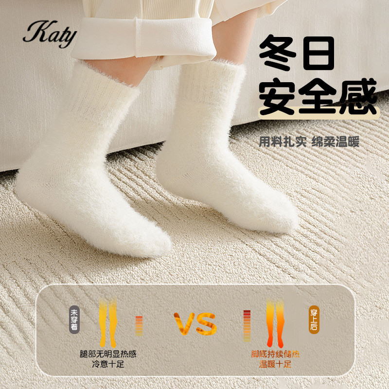 ถุงเท้าเกาหลีสำหรับเด็กและวัยรุ่น ออกแบบมาสำหรับฤดูหนาว มีซับในหนา และใช้วัสดุขนแกะและเทอร์รี่เพื่อความอบอุ่น