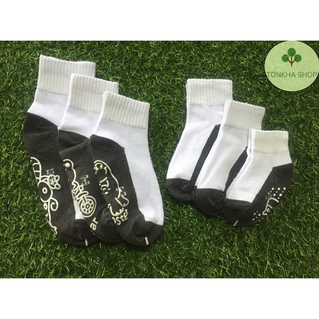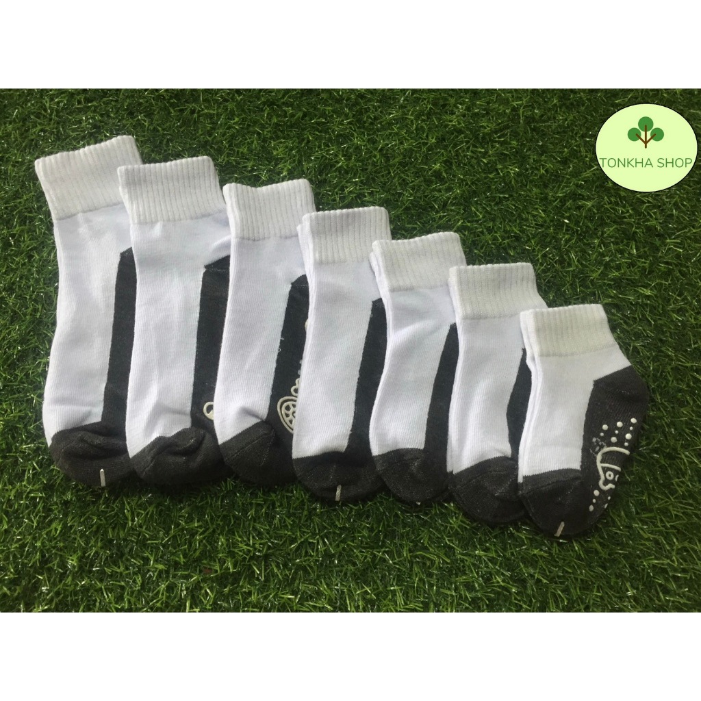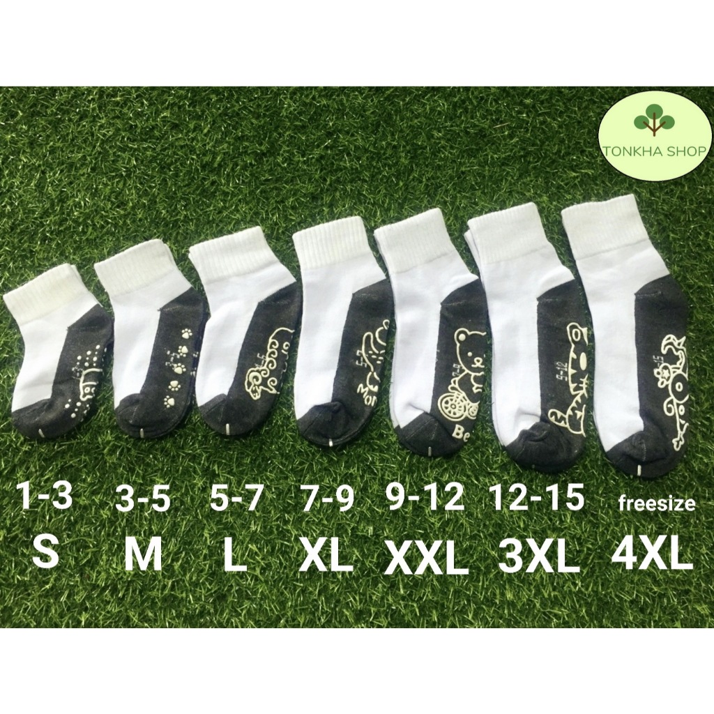ถุงเท้าเด็ก 1 คู่ ถุงเท้านักเรียน มีกันลื่น สีขาวพื้นดำ ไซส์ตามอายุ เกรด A อย่างดี หนา