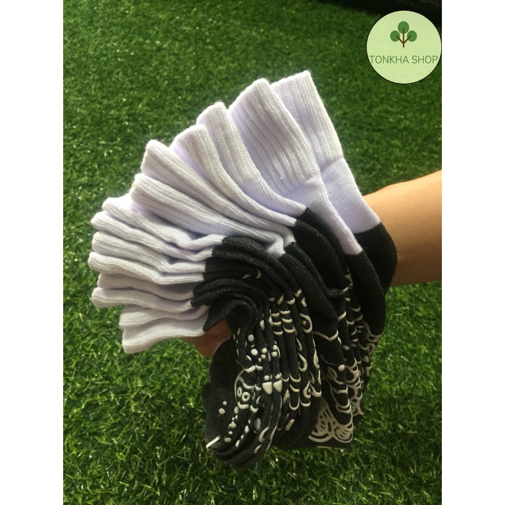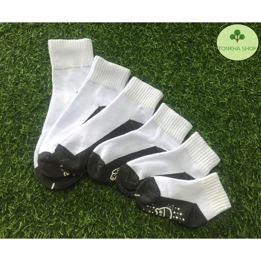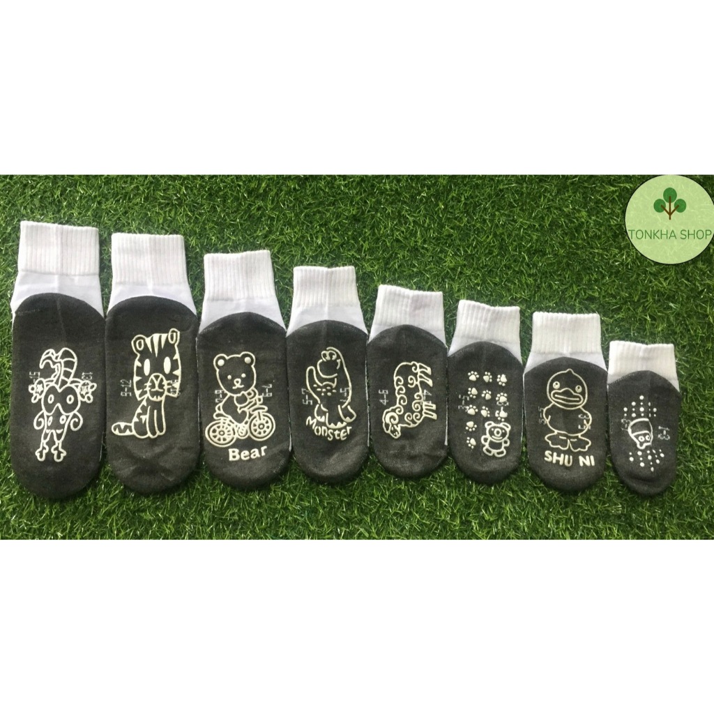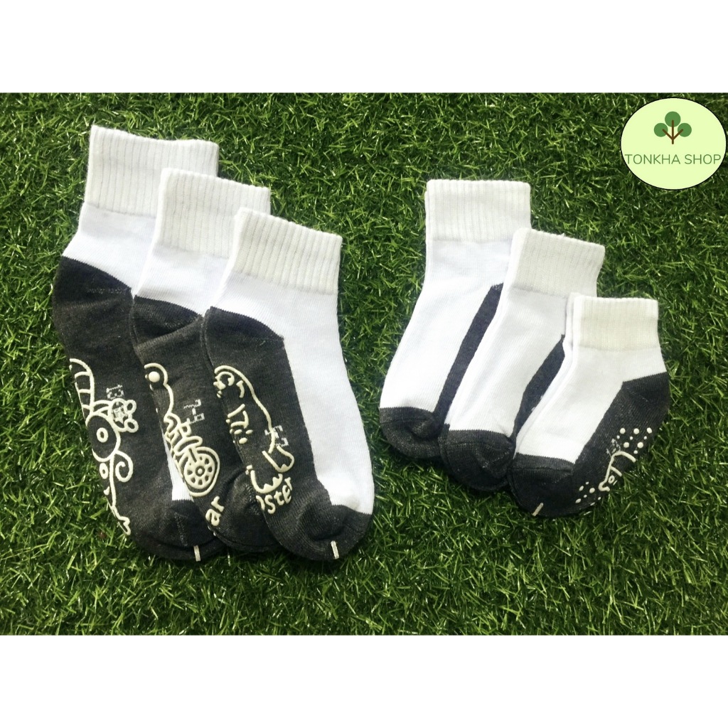 ถุงเท้าเด็ก 1 คู่ ถุงเท้านักเรียน มีกันลื่น สีขาวพื้นดำ ไซส์ตามอายุ เกรด A อย่างดี หนา