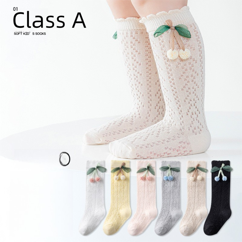 ทารกแรกเกิดถุงเท้าผ้าฝ้ายเด็กฤดูร้อนตาข่ายบางระบายอากาศกว่าเข่าป้องกันยุงยาว