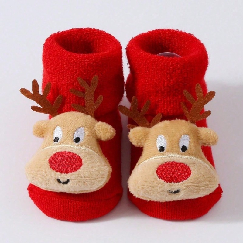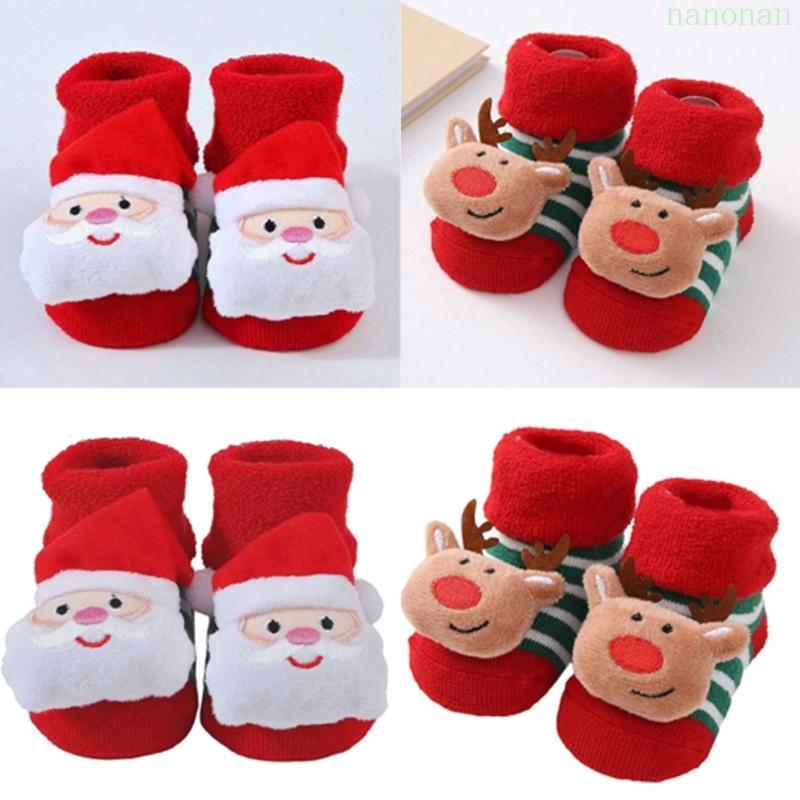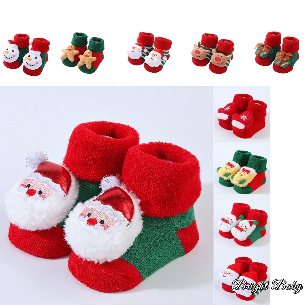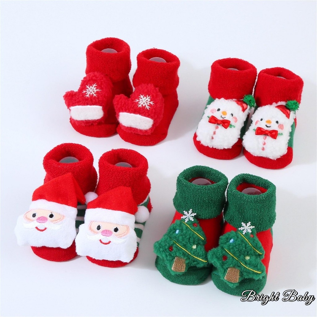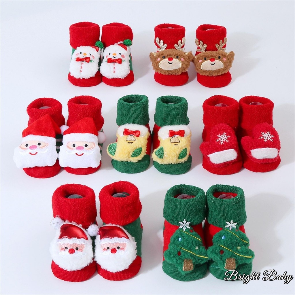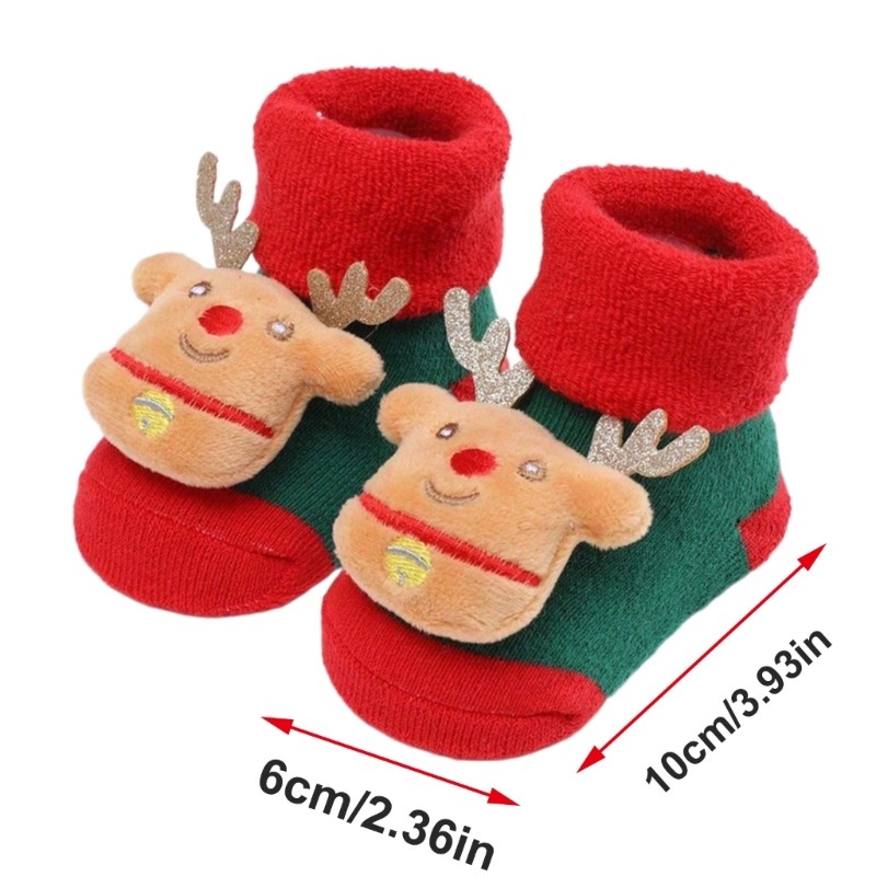 ถุงเท้าเทอร์รี่สำหรับทารกอายุ 0-12 เดือน ลายคริสต์มาส ทำจากผ้าฝ้ายอุ่น ออกแบบเพื่อความปลอดภัยในการสวมใส่