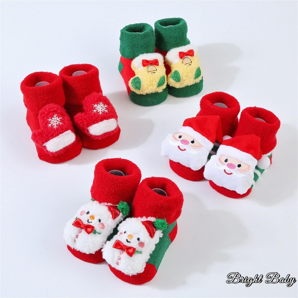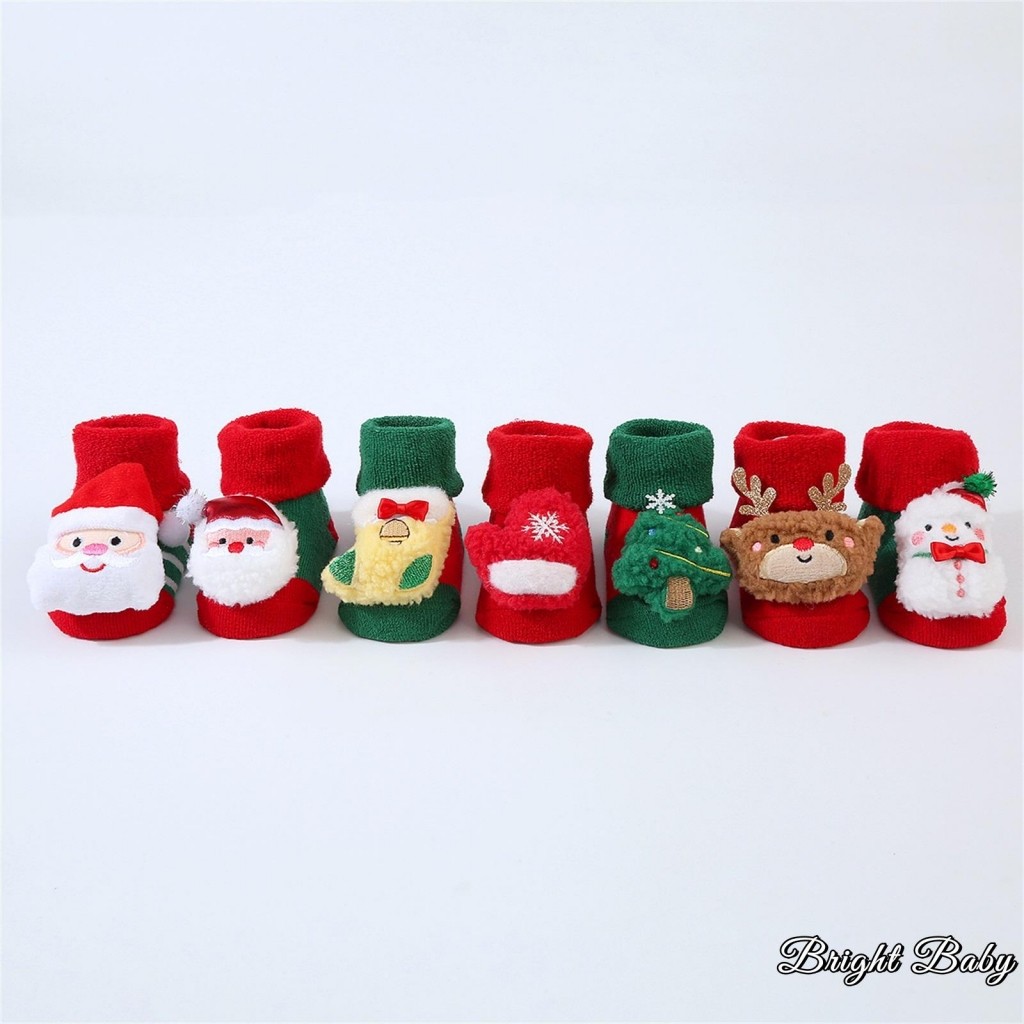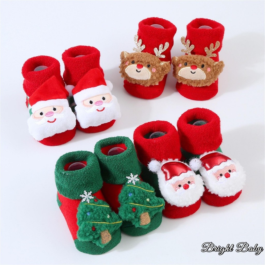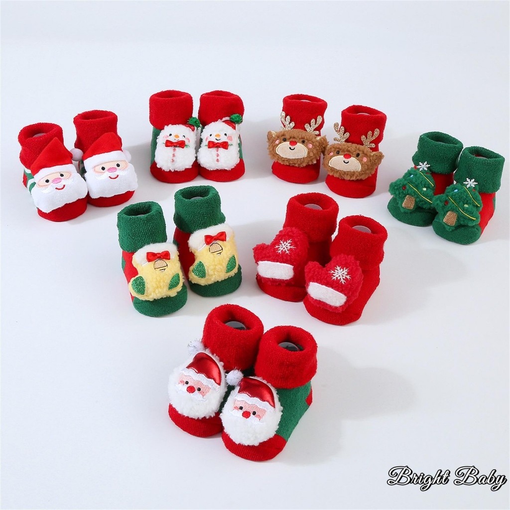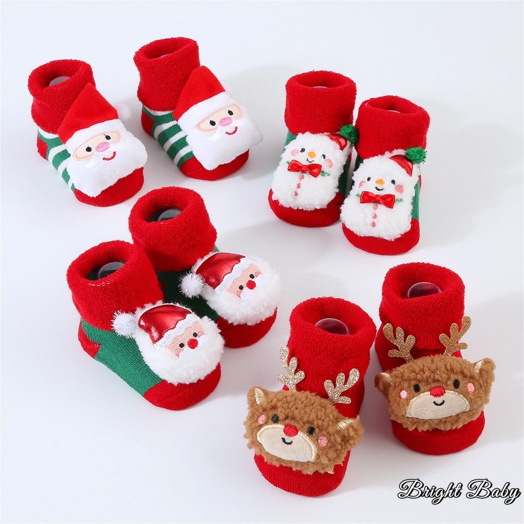 ถุงเท้าเทอร์รี่สำหรับทารกอายุ 0-12 เดือน ลายคริสต์มาส ทำจากผ้าฝ้ายอุ่น ออกแบบเพื่อความปลอดภัยในการสวมใส่