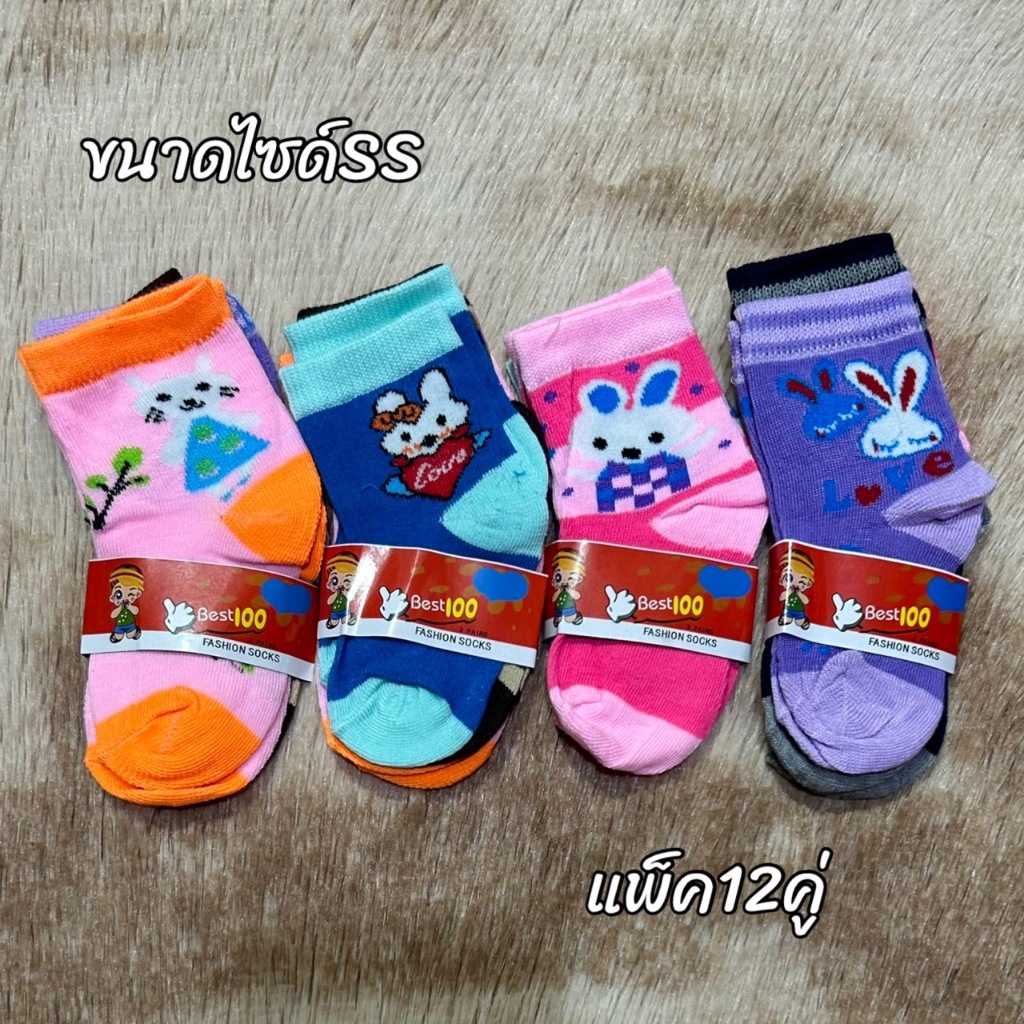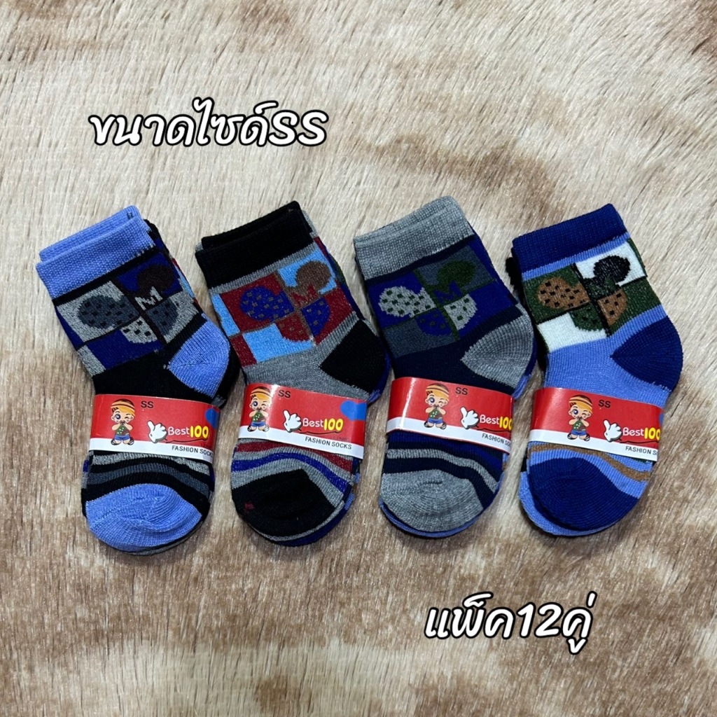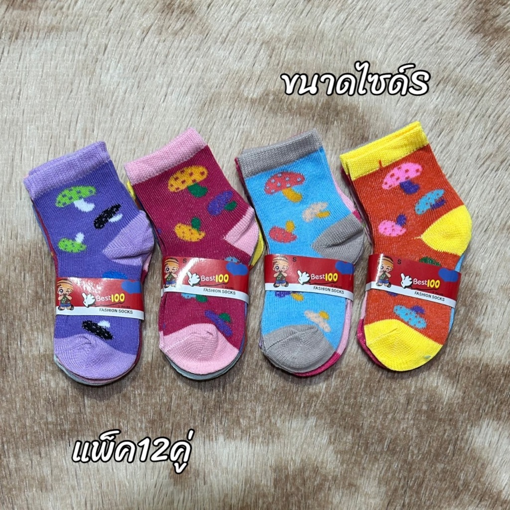 ถุงเท้าแพ็ค12คู่ ถุงเท้าเด็กหญิงสีหวาน/เด็กชายสีเข้ม ลายน่ารัก ทางร้านจะสุ่มลายให้ รวมสีในแพ็ค