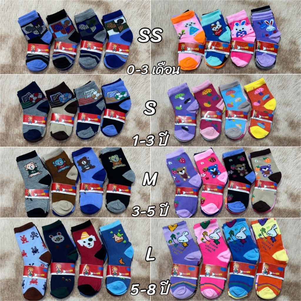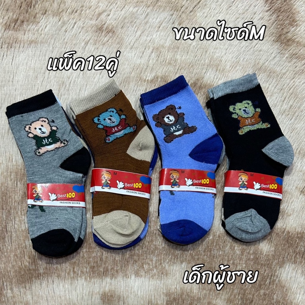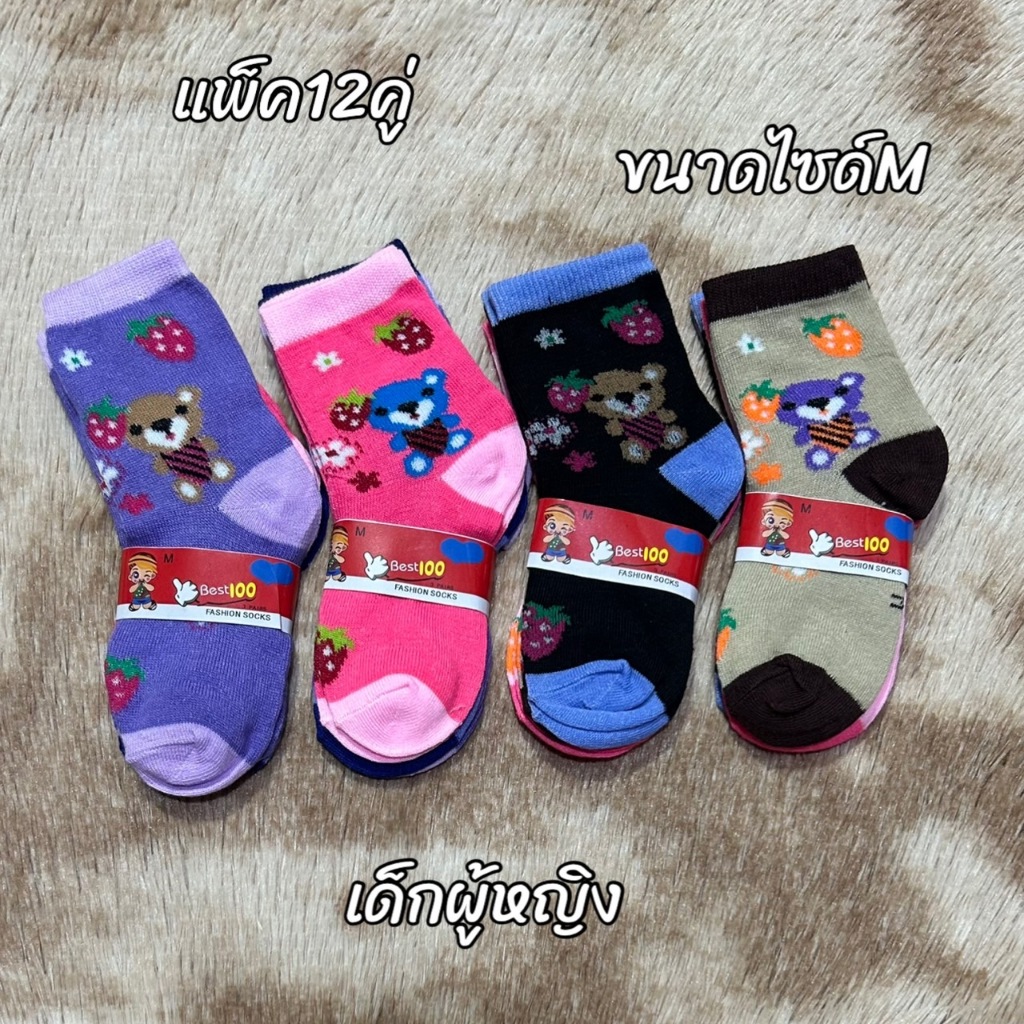 ถุงเท้าแพ็ค12คู่ ถุงเท้าเด็กหญิงสีหวาน/เด็กชายสีเข้ม ลายน่ารัก ทางร้านจะสุ่มลายให้ รวมสีในแพ็ค