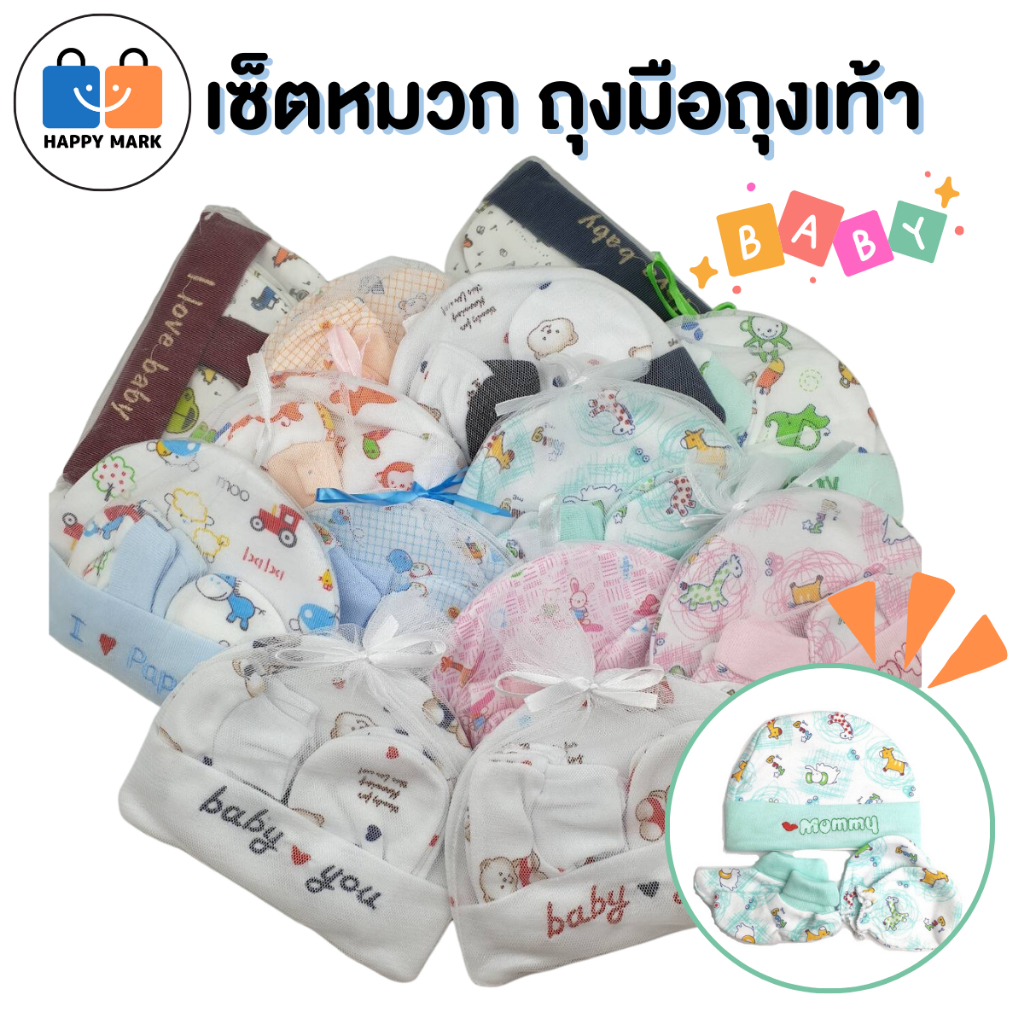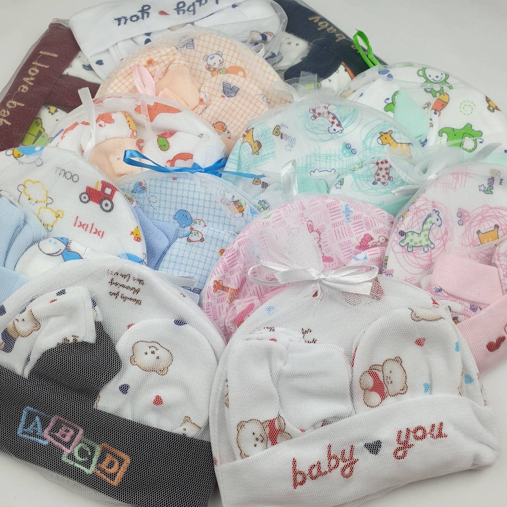 หมวก ถุงมือถุงเท้า สำหรับเด็กแรกเกิด เซ็ตหมวก ลายน่ารัก ของใช้เด็กอ่อน ของเตรียมคลอด