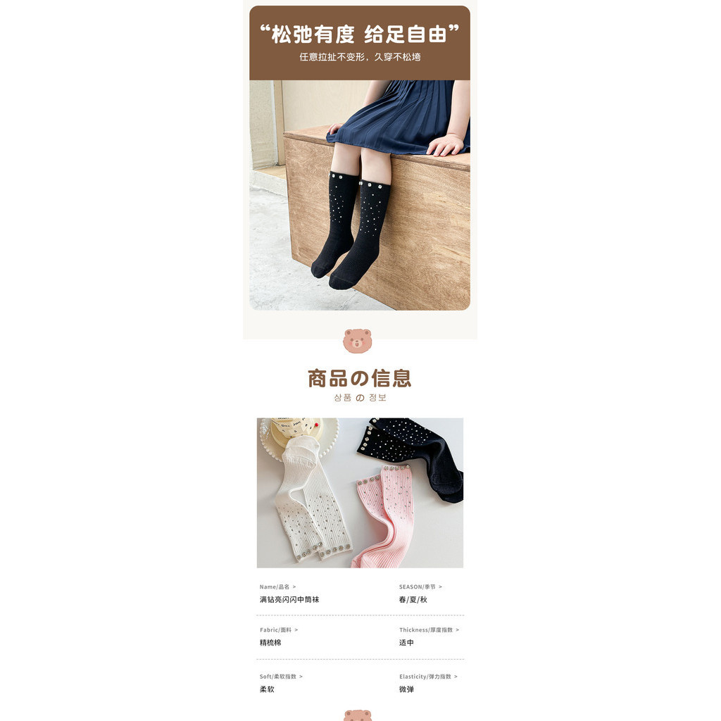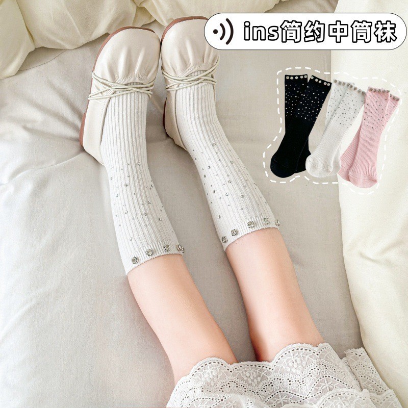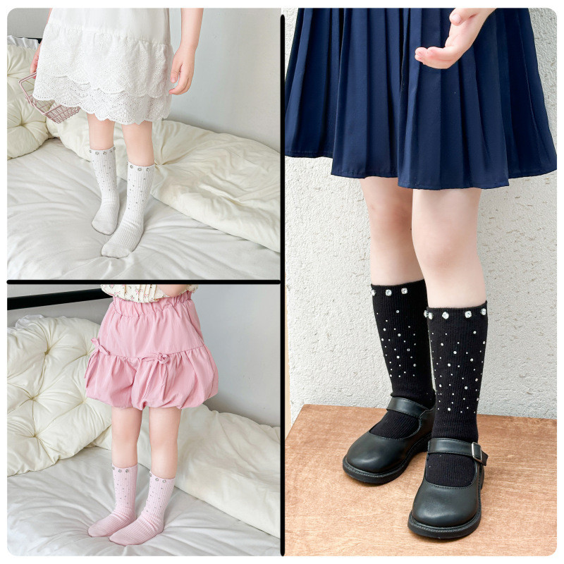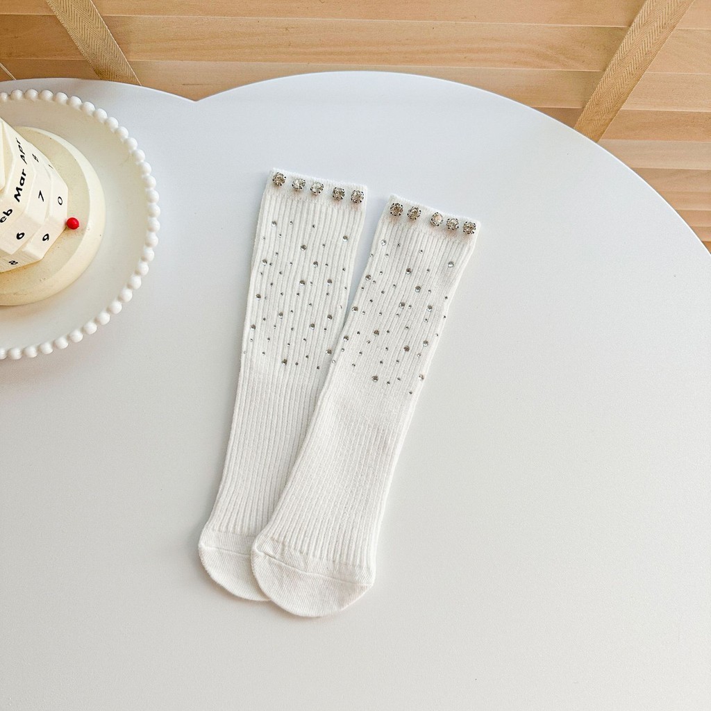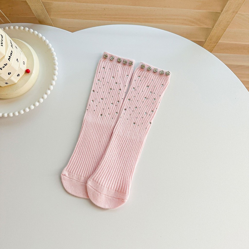 สาวเพชรเต็มถุงเท้าหลอดกลางฤดูร้อนเด็กแฟชั่นลูกวัวถุงเท้าเด็กร้อนเพชรเจ้าหญิงถุงเท้า