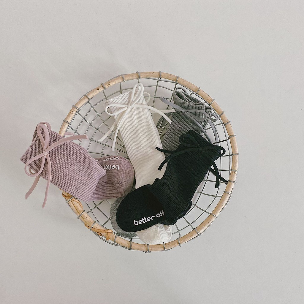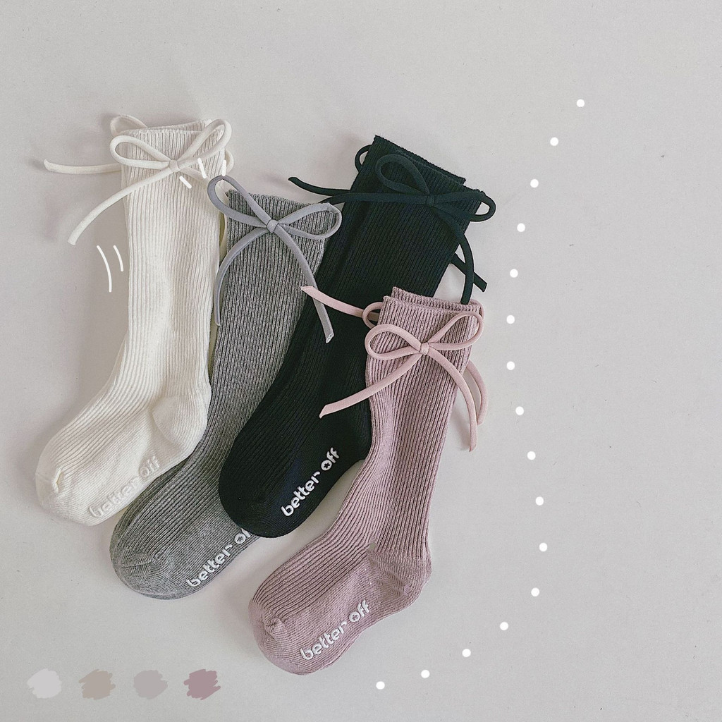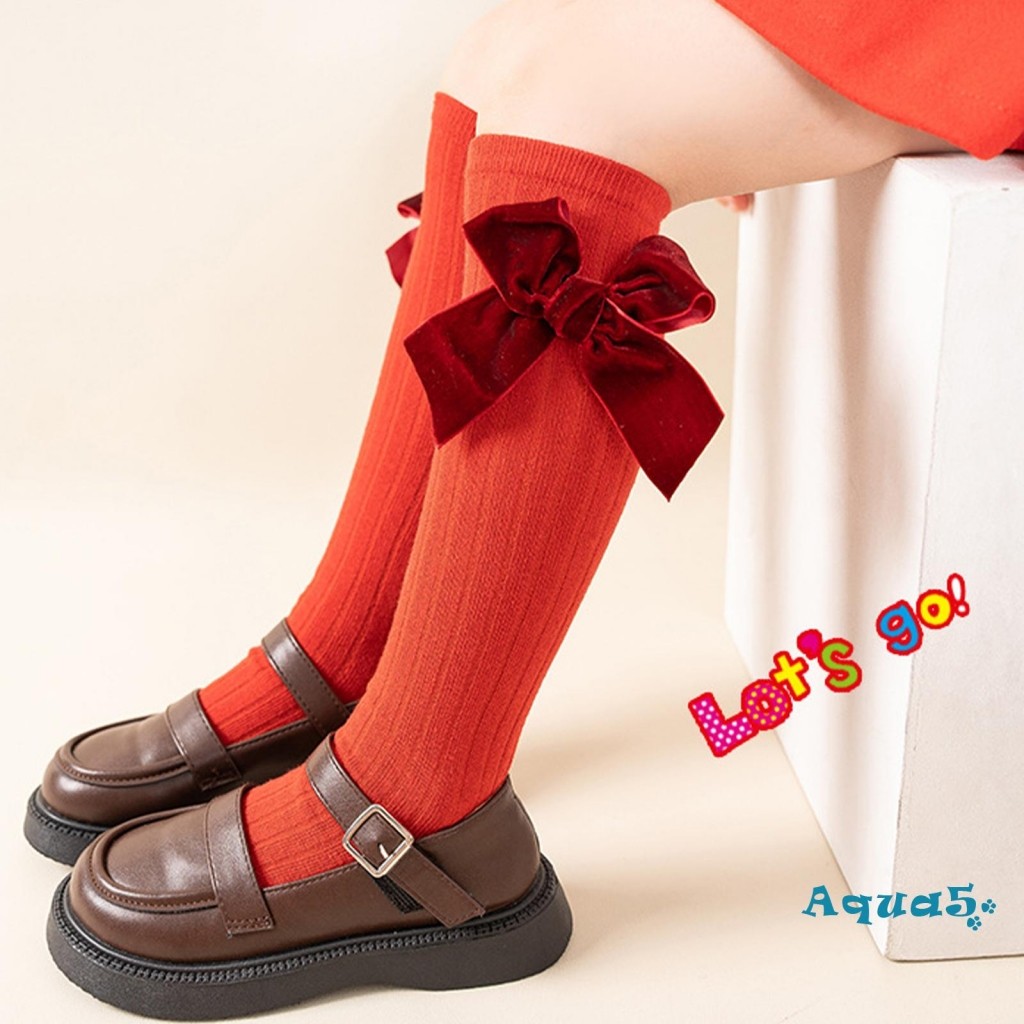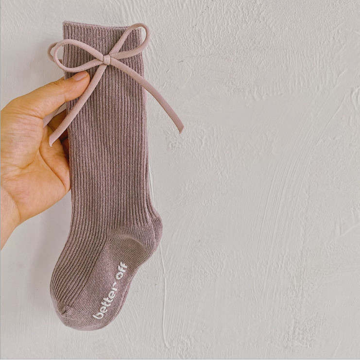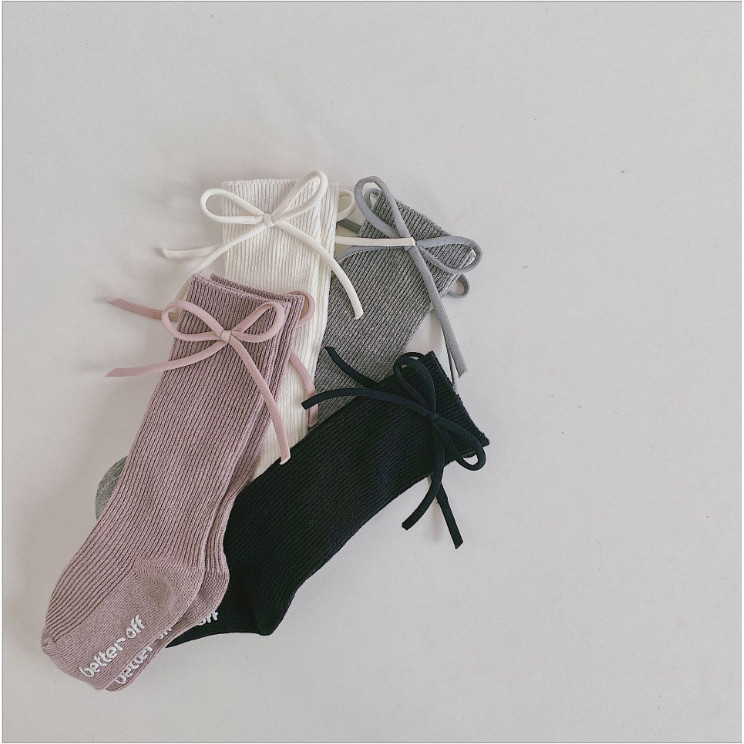 สาวเจ้าหญิงถุงเท้าเด็กน่ารักโบว์ถุงเท้าเด็กสไตล์เกาหลีสีทึบถุงเท้าลูกวัว