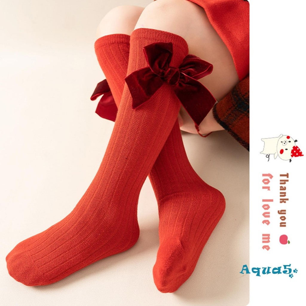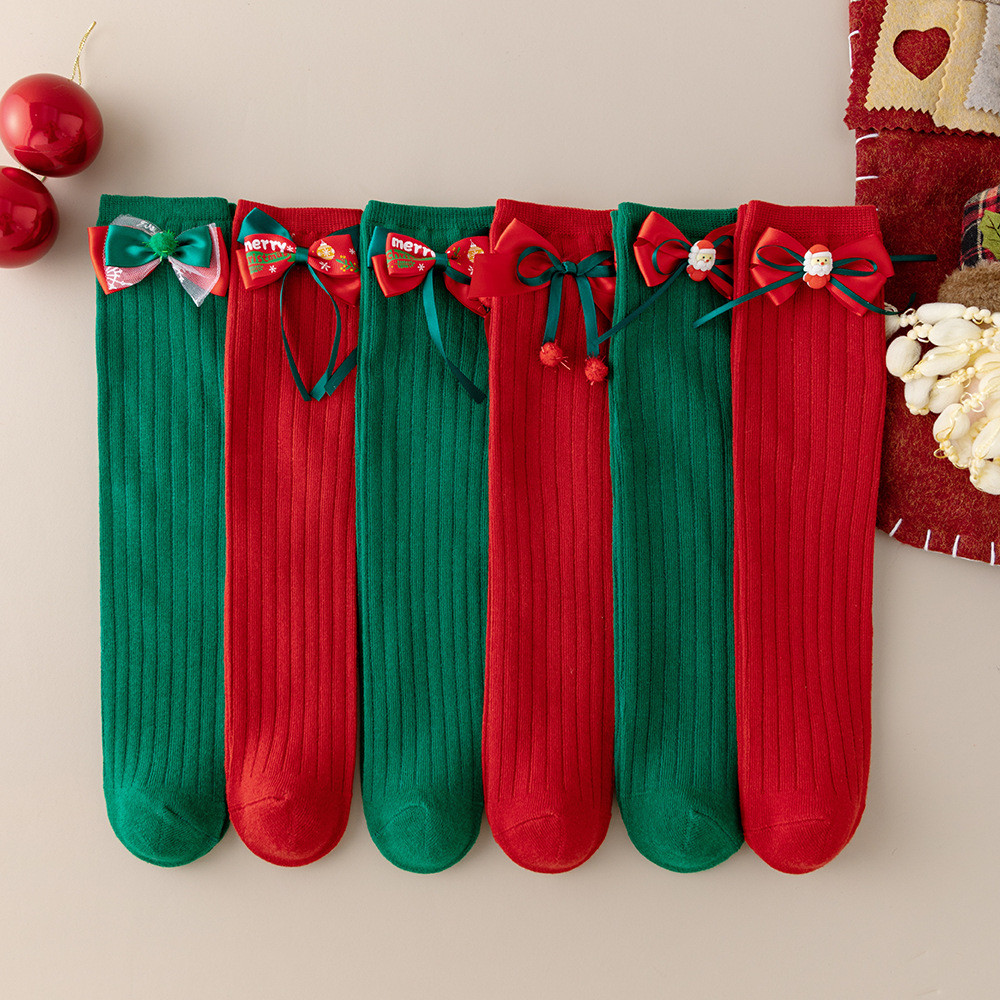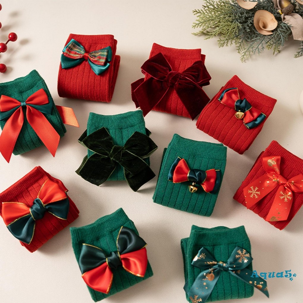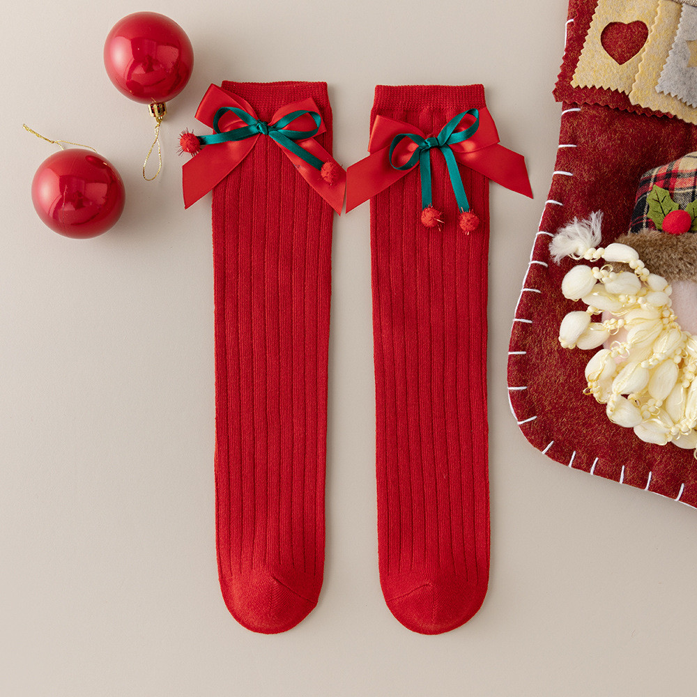 เด็กถุงเท้าฤดูใบไม้ร่วงฤดูหนาวโบว์สีแดงถุงเท้าคริสต์มาส