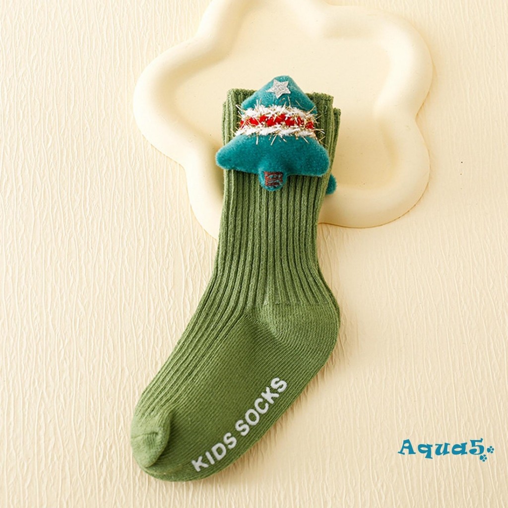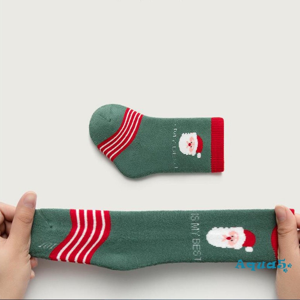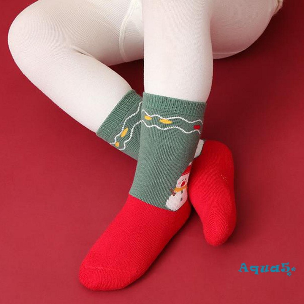 สีทึบถุงเท้าคริสต์มาสน่ารักการ์ตูนซานตาคลอสต้นคริสต์มาสหนาถุงเท้าฤดูหนาวที่อบอุ่นสําหรับเด็กสาวเด็กต่อต้านเย็นนอนถุงเท้าชั้น