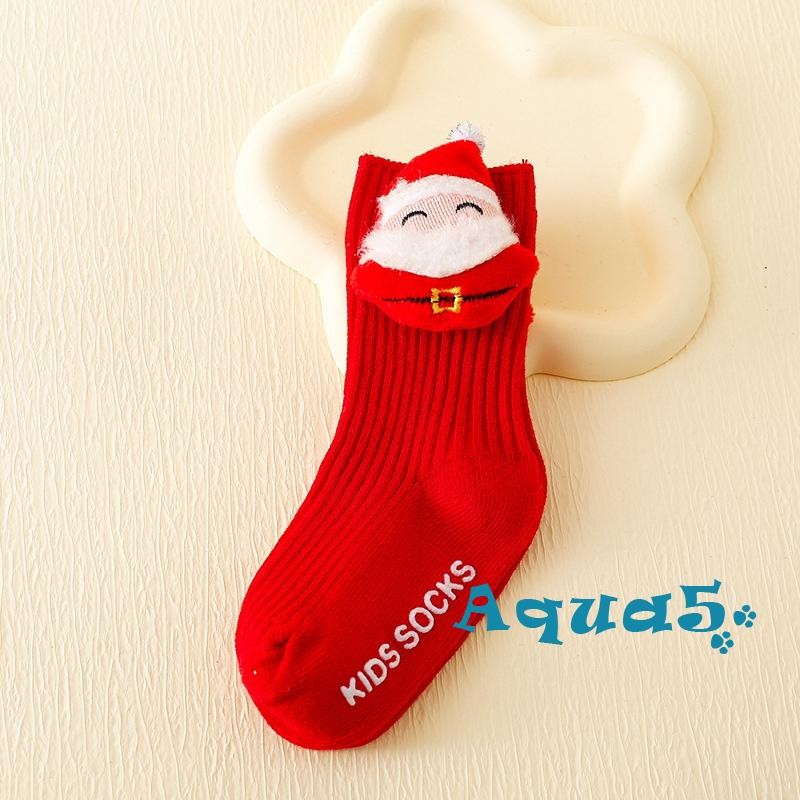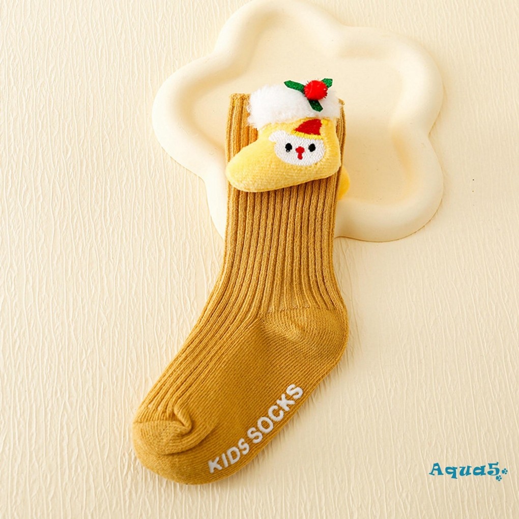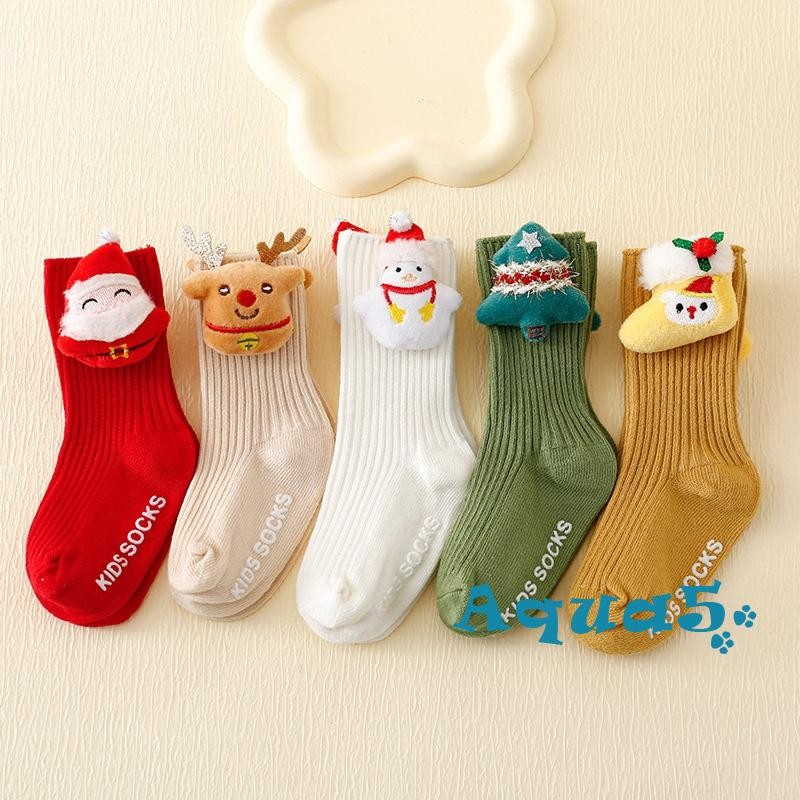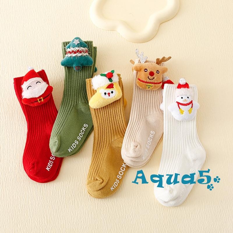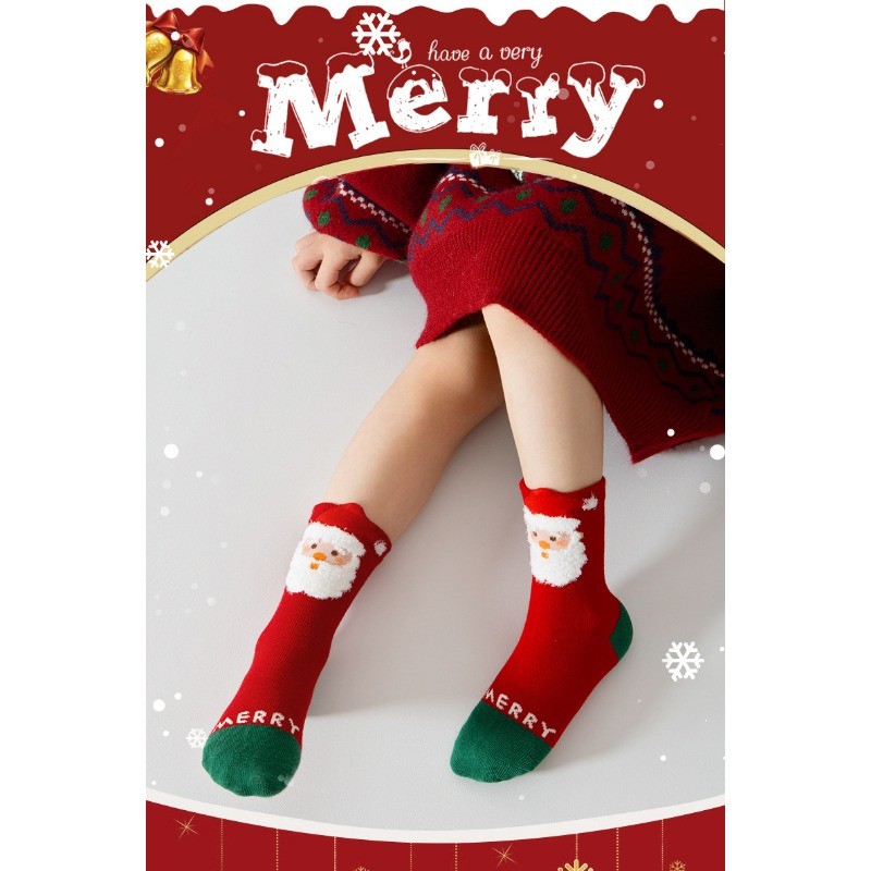 สีทึบถุงเท้าคริสต์มาสน่ารักการ์ตูนซานตาคลอสต้นคริสต์มาสหนาถุงเท้าฤดูหนาวที่อบอุ่นสําหรับเด็กสาวเด็กต่อต้านเย็นนอนถุงเท้าชั้น