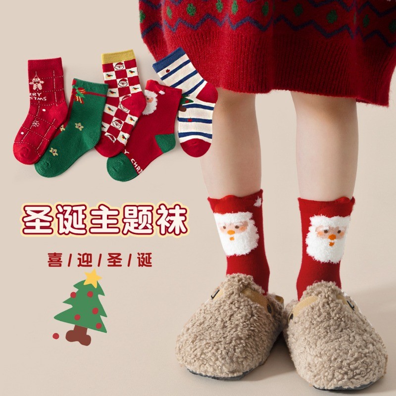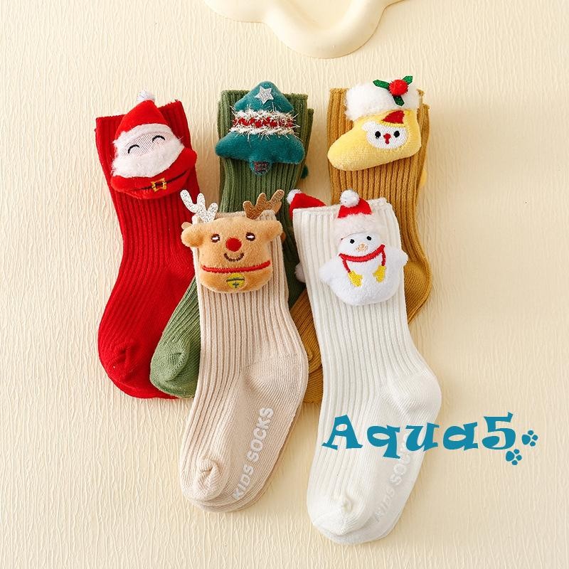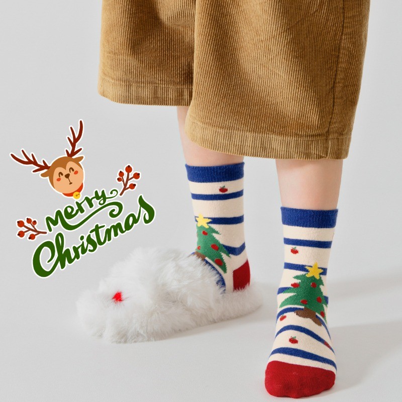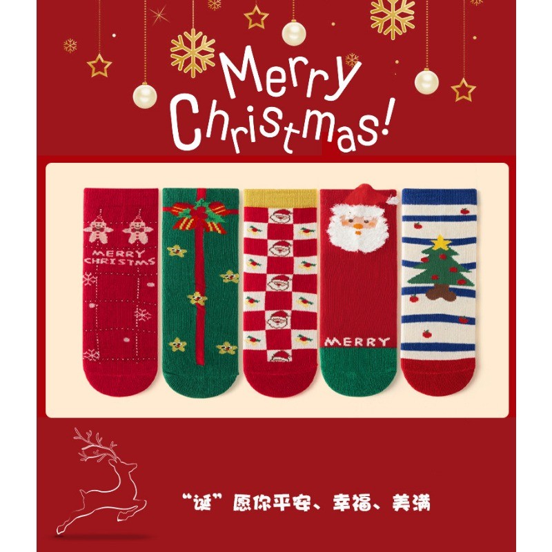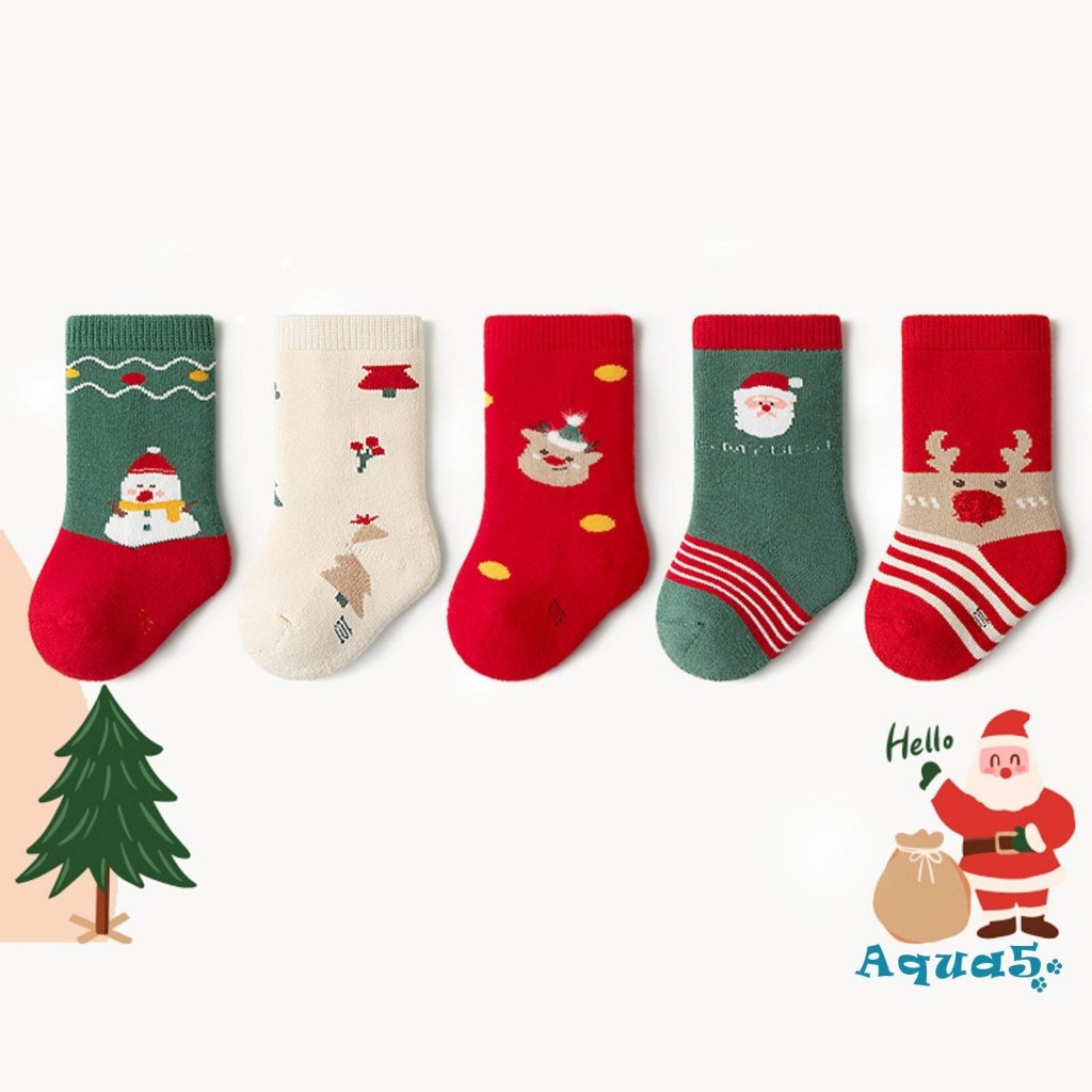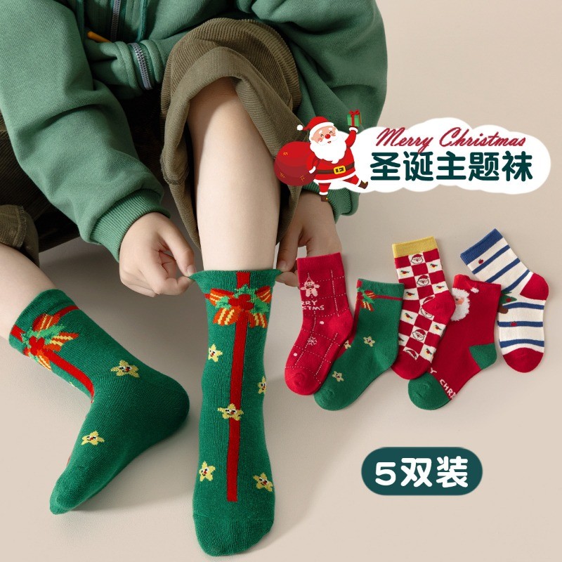เด็กคริสต์มาสถุงเท้าของขวัญหลอดกลางผ้าฝ้าย 5 คู่แพ็ค