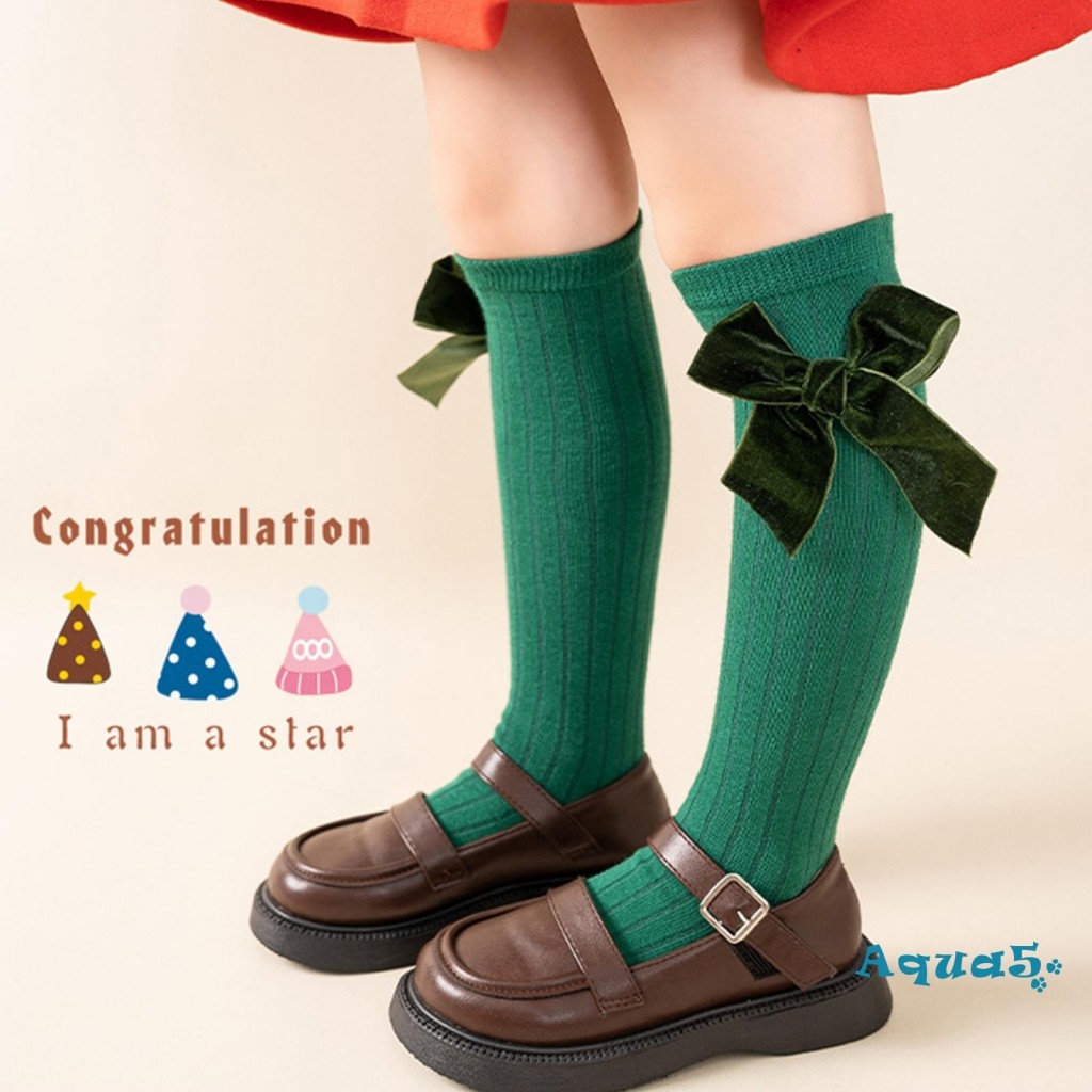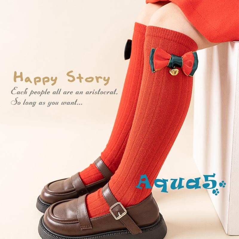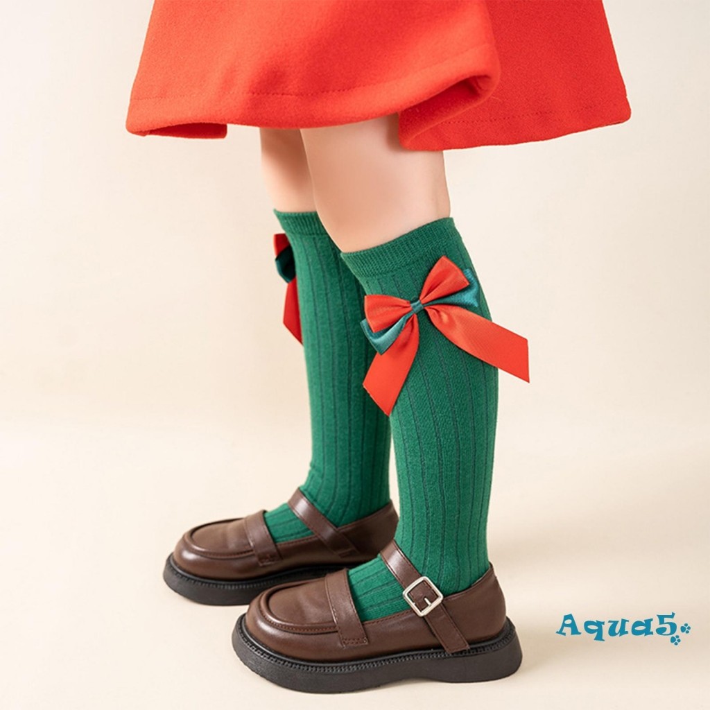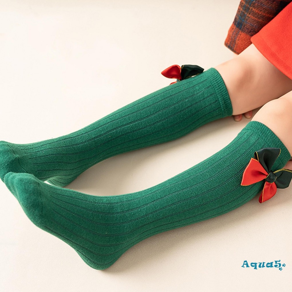 อุ๊ย-เด็กสาวคริสต์มาสถุงเท้าที่มีน้ําหนักเบานุ่มยืดหยุ่นเข่าสูงโบว์ถุงเท้าสําหรับทุกวันพรรค