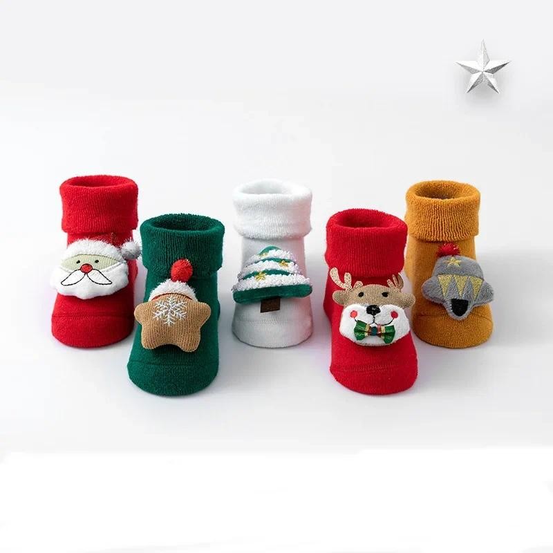 อุ๊ย-เด็กทารกชายคริสต์มาสถุงเท้าผ้าฝ้ายหนาฤดูหนาวที่อบอุ่นลูกเรือถุงเท้าสําหรับทารกเด็กวัยหัดเดิน