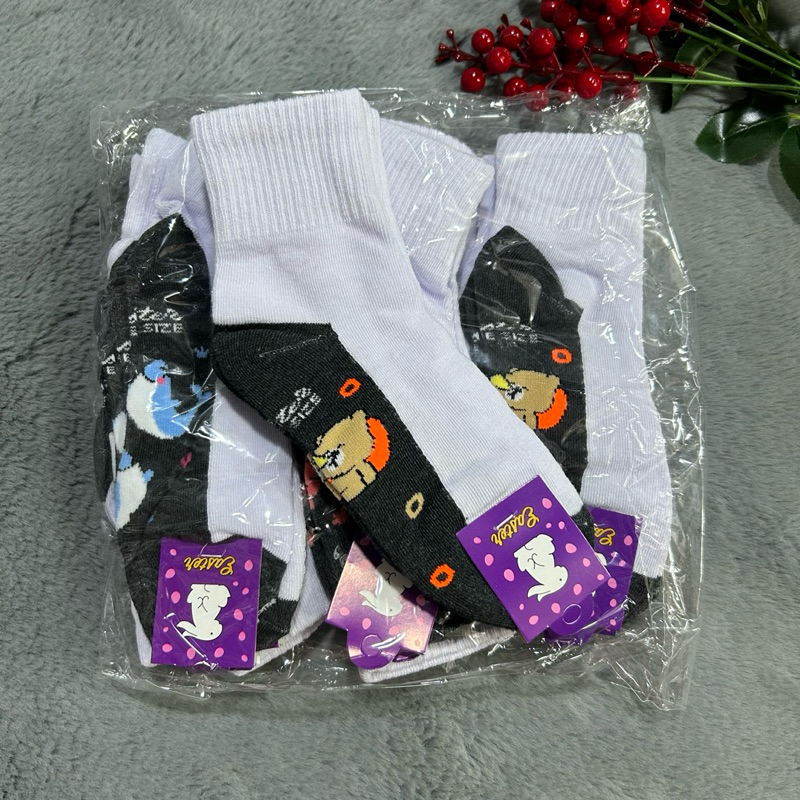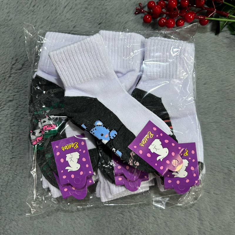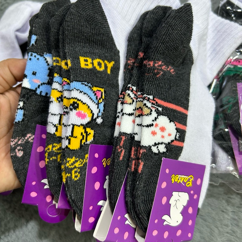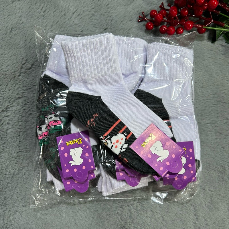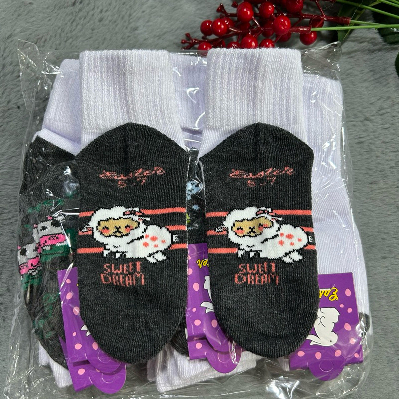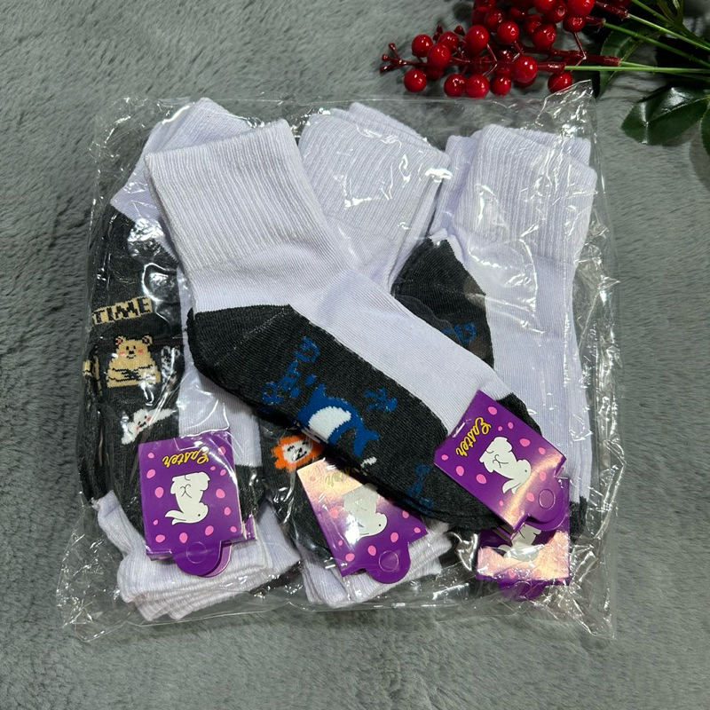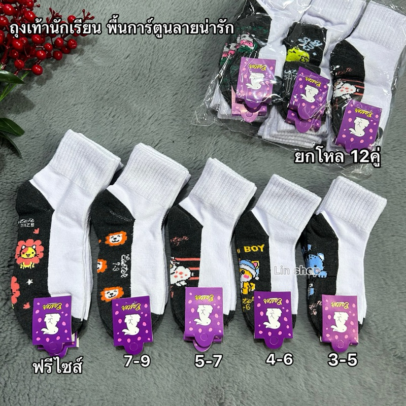 แพ็ค12 คู่ และ 6 คู่ ถุงเท้านักเรียนลายการ์ตูน เนื้อเนียนนุ่มใส่สบาย งานไทยพร้อมส่ง