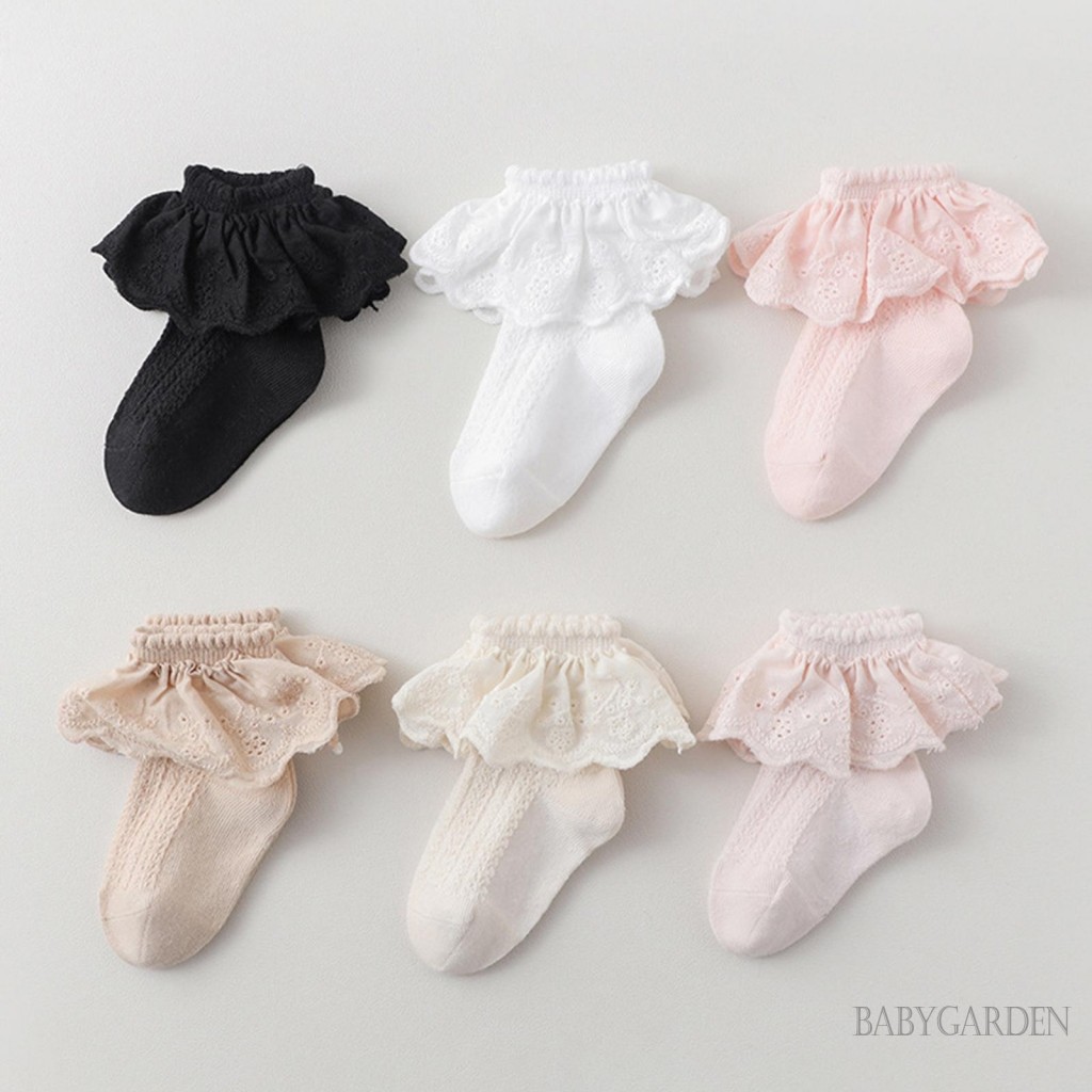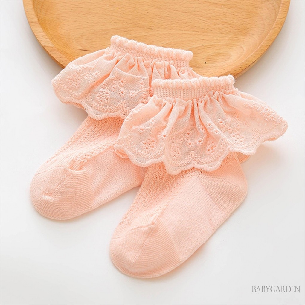 Baga-0-5years Baby Girls Lace Ruffles Hem Princess Ankle Socks