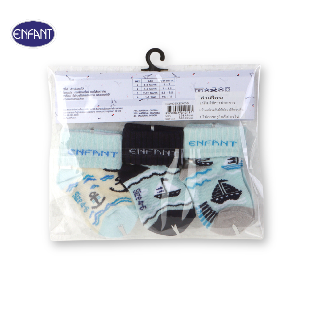 ENFANT (อองฟองต์) ถุงเท้าเด็กอ่อนแพ็ก 3 สี พับข้อ สำหรับเด็ก 4-6 เดือน ขนาด 7-8.7 CM. สีฟ้า