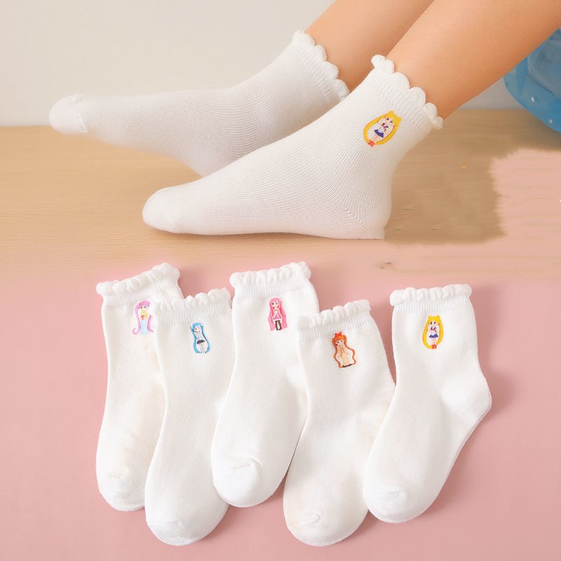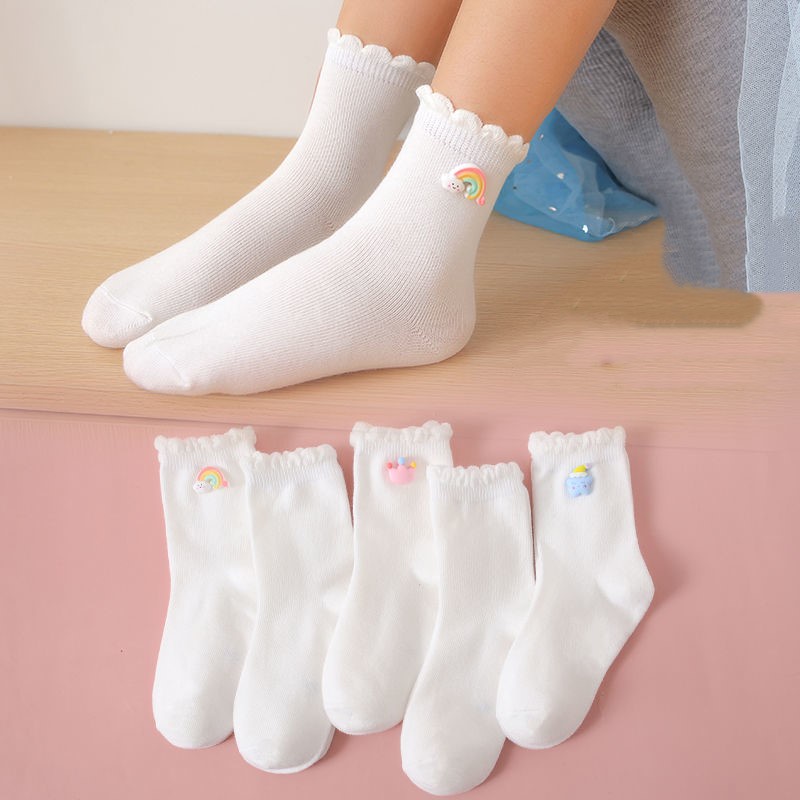 ถุงเท้า ผ้าถัก พิมพ์ลายตัวอักษร สีพื้น เข้ากับทุกการแต่งกาย แฟชั่นฤดูใบไม้ร่วง และฤดูหนาว สําหรับเด็กผู้ชาย และเด็กผู้หญิง มี 5 คู่