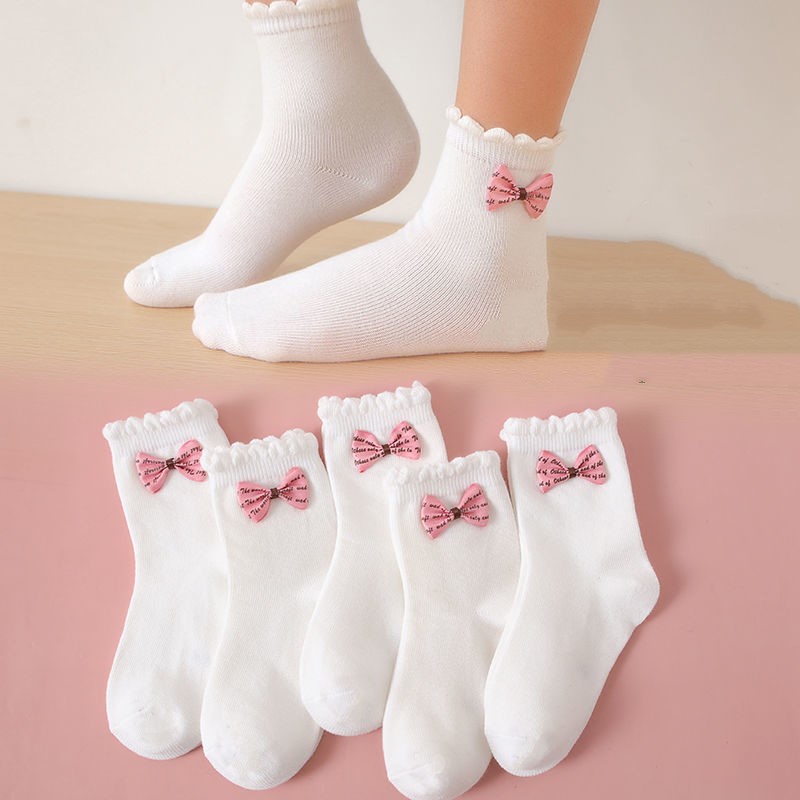 ถุงเท้า ผ้าตาข่าย ระบายอากาศ ทรงหลวม ประดับโบว์ สไตล์เกาหลี แฟชั่นฤดูใบไม้ผลิ และฤดูร้อน สําหรับเด็ก