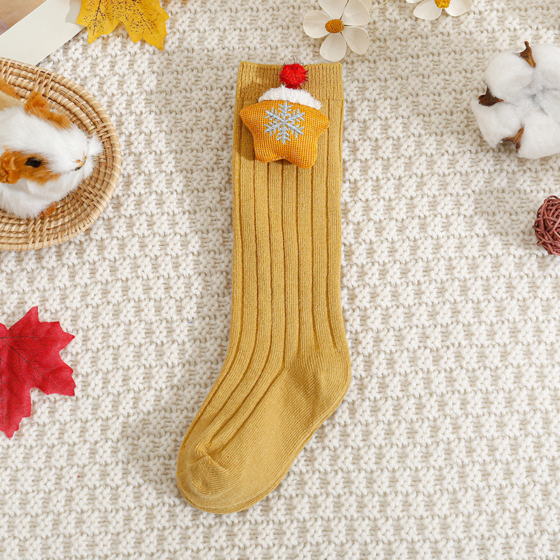 ถุงน่องสาวคริสต์มาสฤดูใบไม้ผลิฤดูใบไม้ร่วงผ้าฝ้ายแท้เด็กถุงเท้าลูกวัวแต่เข่าบางสไตล์ทารกครึ่งถุงเท้าสูง