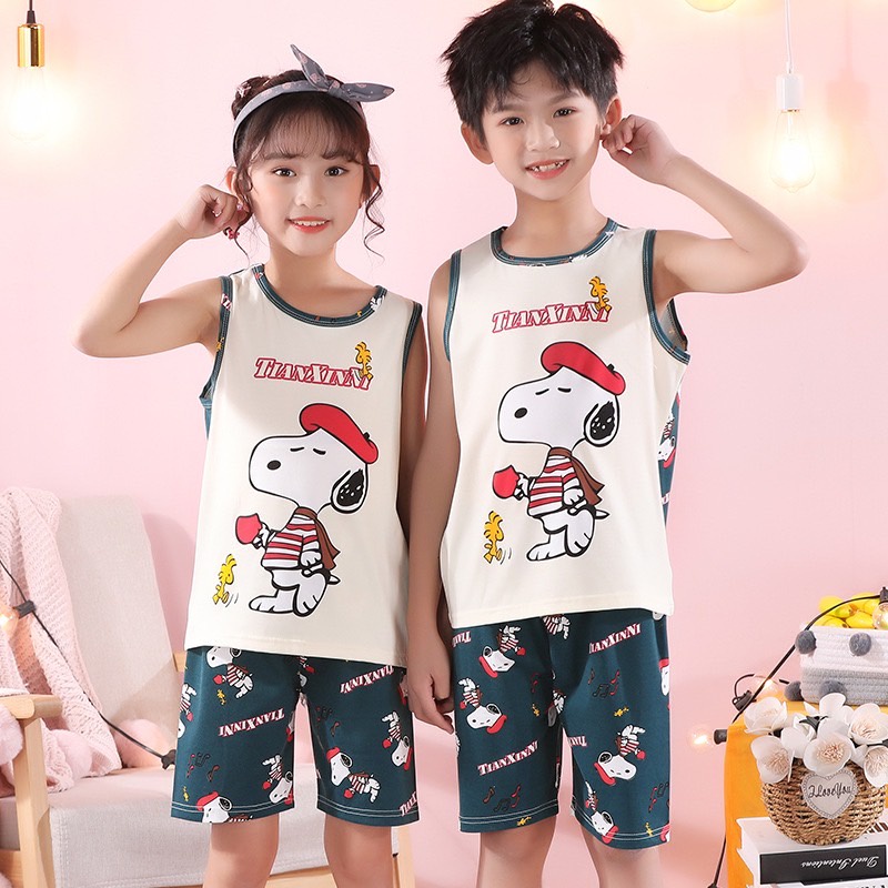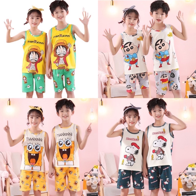 ลด10% โค้ด DDXDECW4 ชุดนอนเด็กแขนกุดลายการ์ตูนลายน่ารัก เนื้อผ้านิ่มใส่สบาย F11-F17