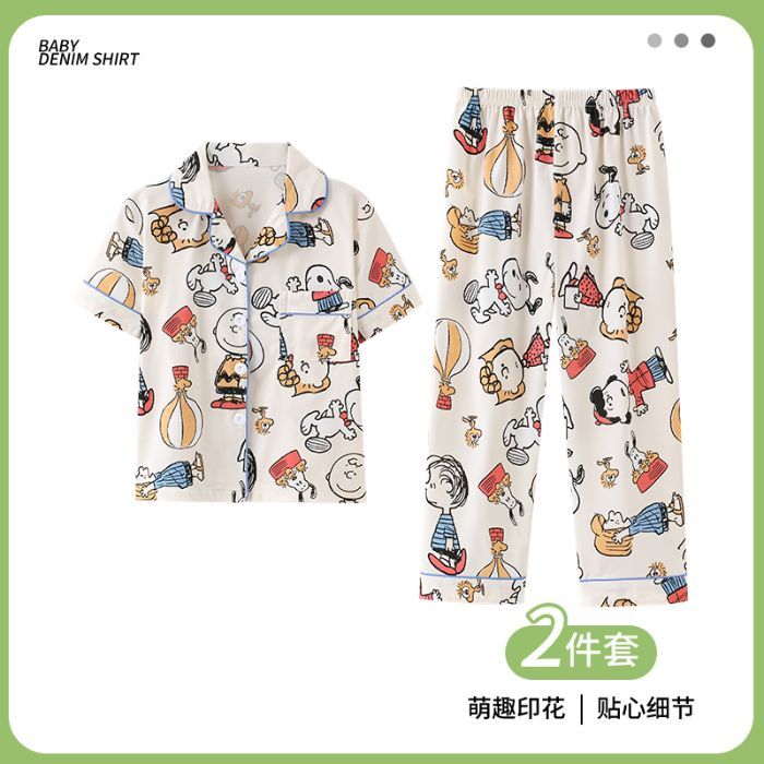 ม่เสื้อคาร์ดิแกนเด็กชายและเด็กหญิงแขนยาวปกชุดนอนเด็กชุดบริการที่บ้านชุดนอนเด็กชายชุดนอนเด็ก