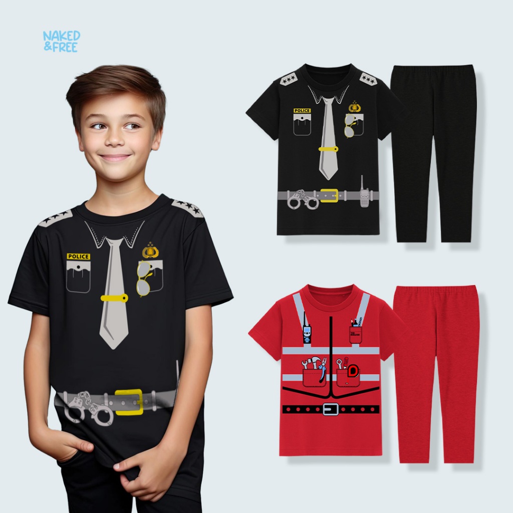 เปลือยเปล่า & ฟรี ชุดนอนเด็กผู้ชายอาชีพกลายเป็นตํารวจและโครงการ ผู้ช่วยหน้า อายุ 2 ถึง 8 ปี
