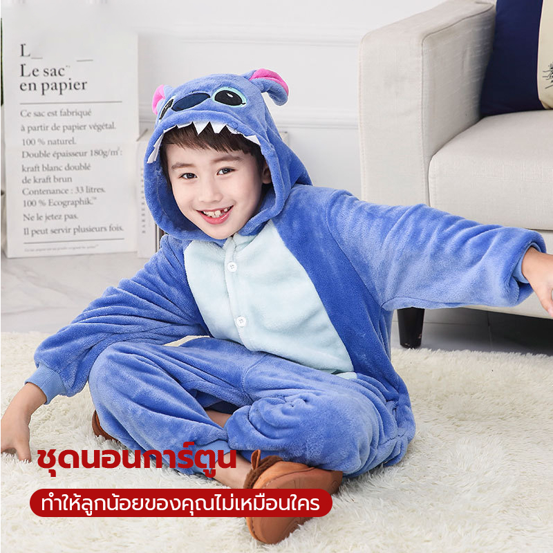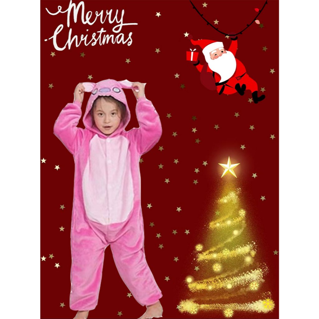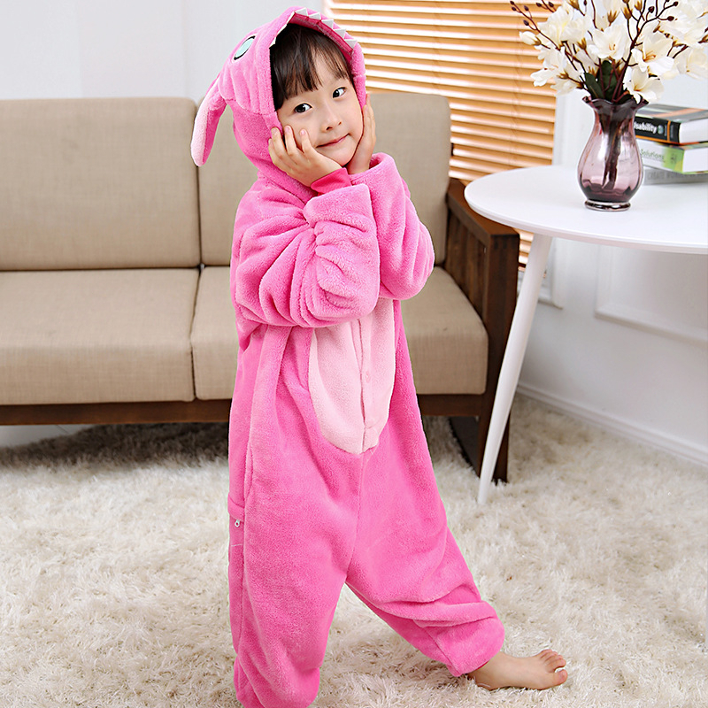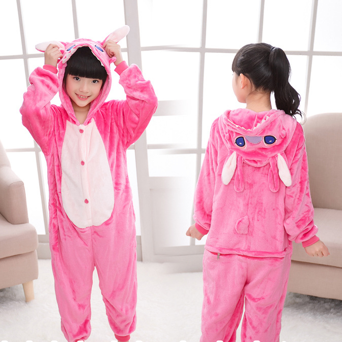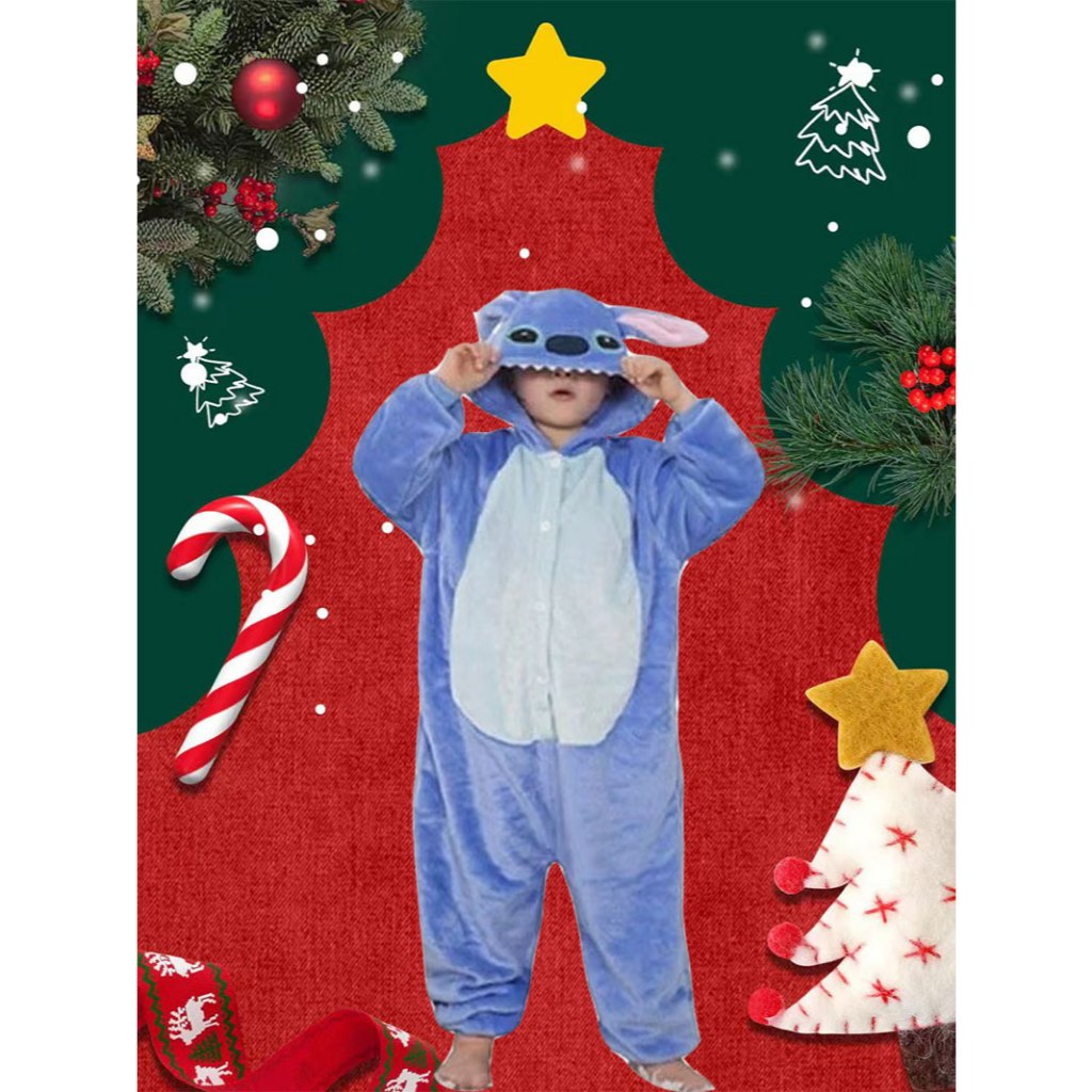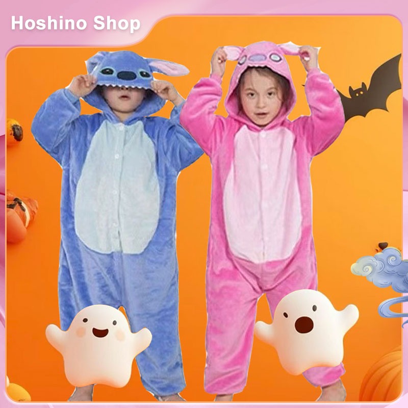 สีชมพูและสีฟ้าStitch ชุดนอน ชุดนอนผ้าสักหลาด ของขวัญที่ต้องมีสำหรับวันฮาโลวีน การเล่นบทบาทการ์ตูน